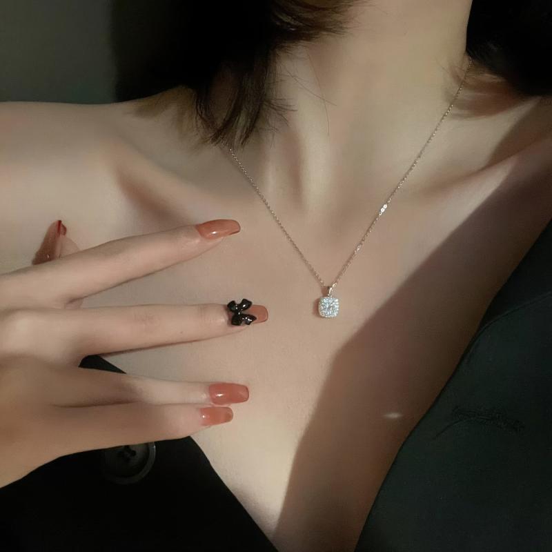 This elegant necklace features a square rhinestone pendant for a sophisticated look that sparkles in any light.