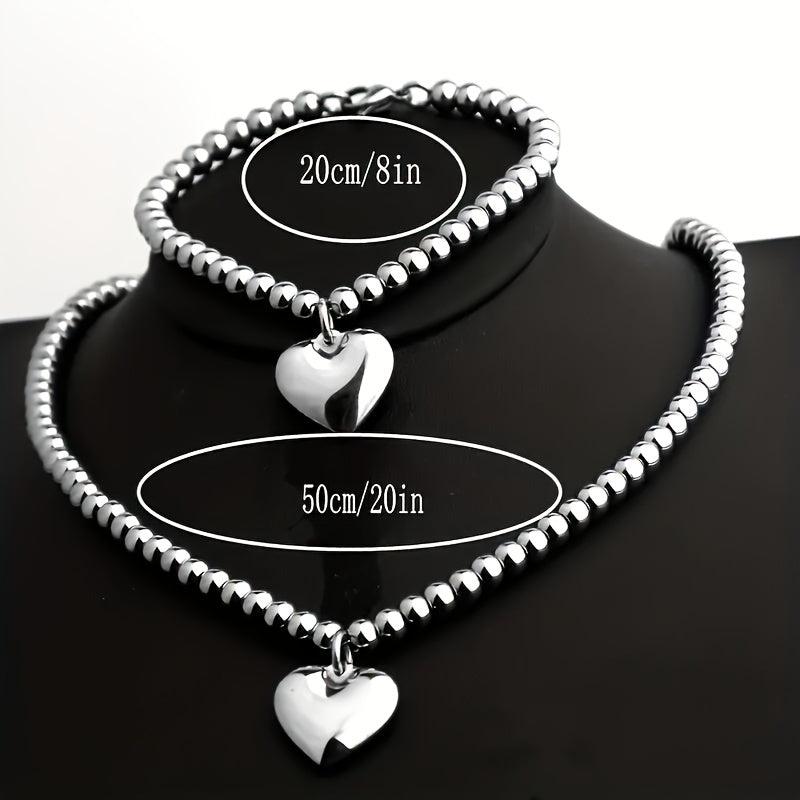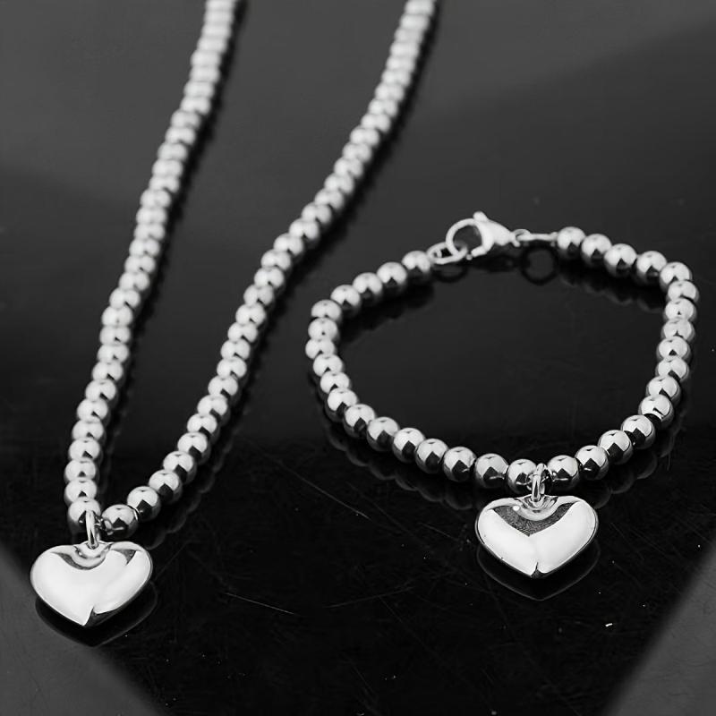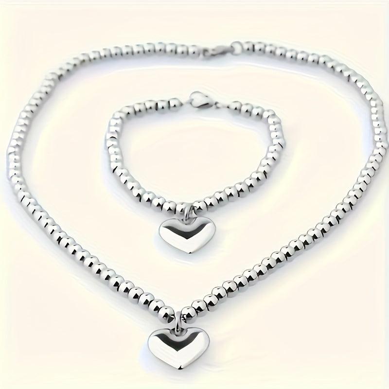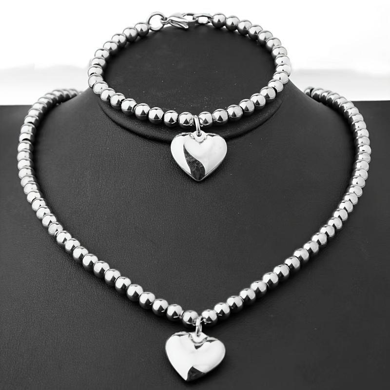 Elegant set featuring a beaded heart design in durable stainless steel.