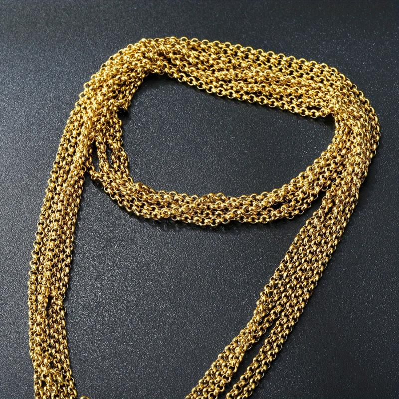 Stainless Steel Cross Chain Necklace Y2K Golden Tone Pendant Hip Hop Style