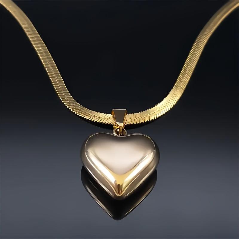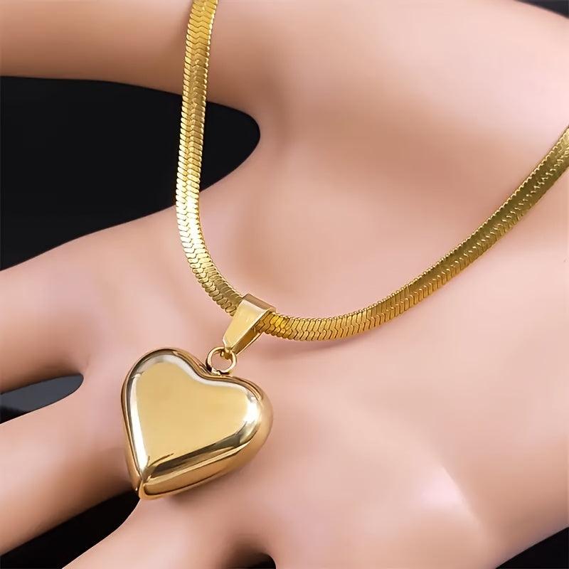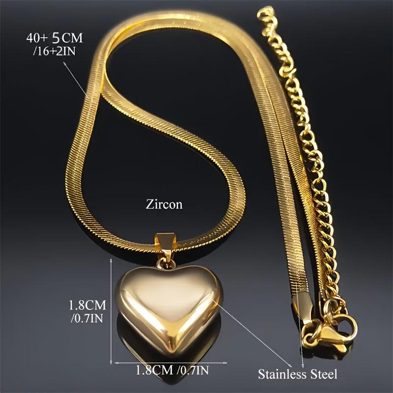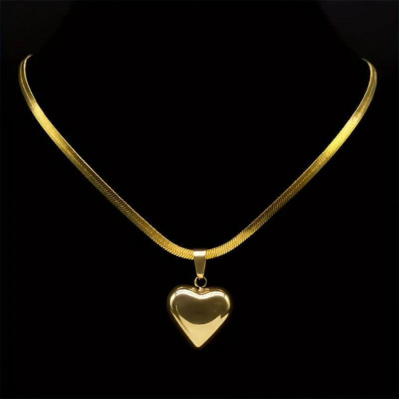 This women's necklace features a durable stainless steel heart pendant with a golden tone polished finish, making it suitable for everyday wear and parties. It's a great gift for her that can be worn year-round.