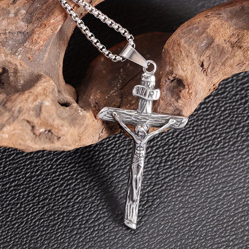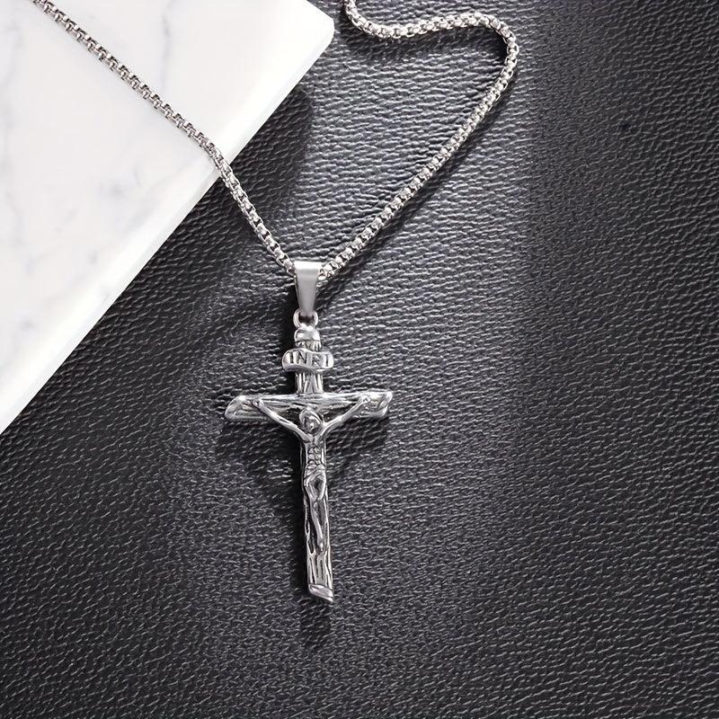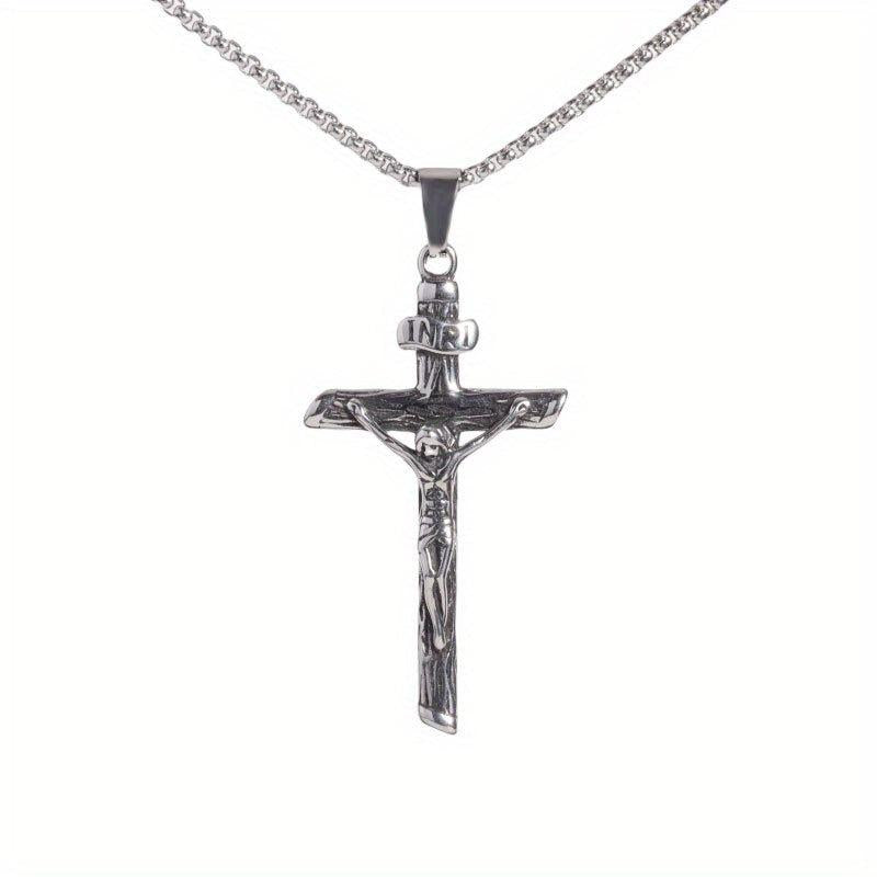 This stainless steel necklace pendant features a religious prayer design, making it a meaningful and stylish accessory for both men and women.