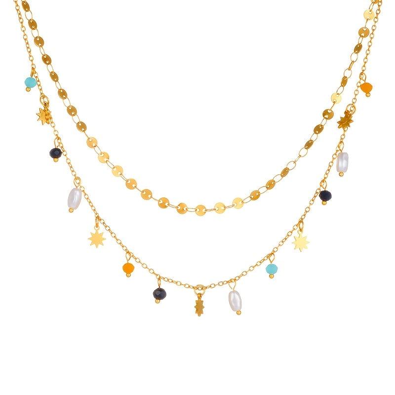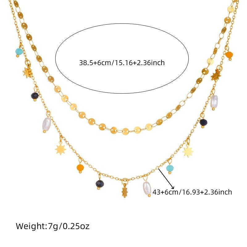 Add a touch of retro charm to your ensemble with this stainless steel necklace adorned with colorful bead pendants. Ideal for banquets, parties, or other special occasions, this necklace also makes a great gift idea.