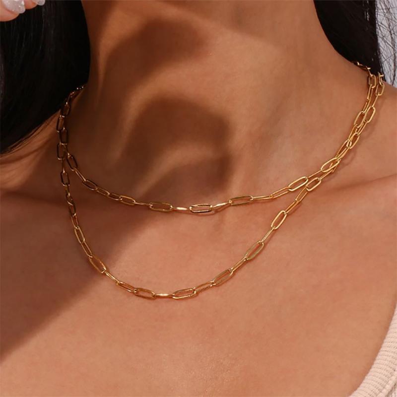 Elegant stainless steel paperclip chain, perfect gift for girlfriend, daughter, mother. Chain length ideal for sweaters.