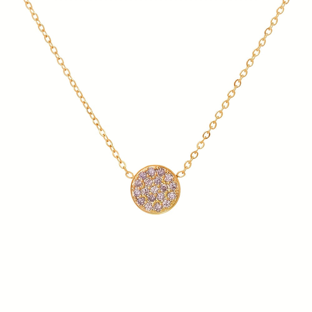 This necklace features a versatile round charm design with rhinestones, perfect for parties and everyday wear.
