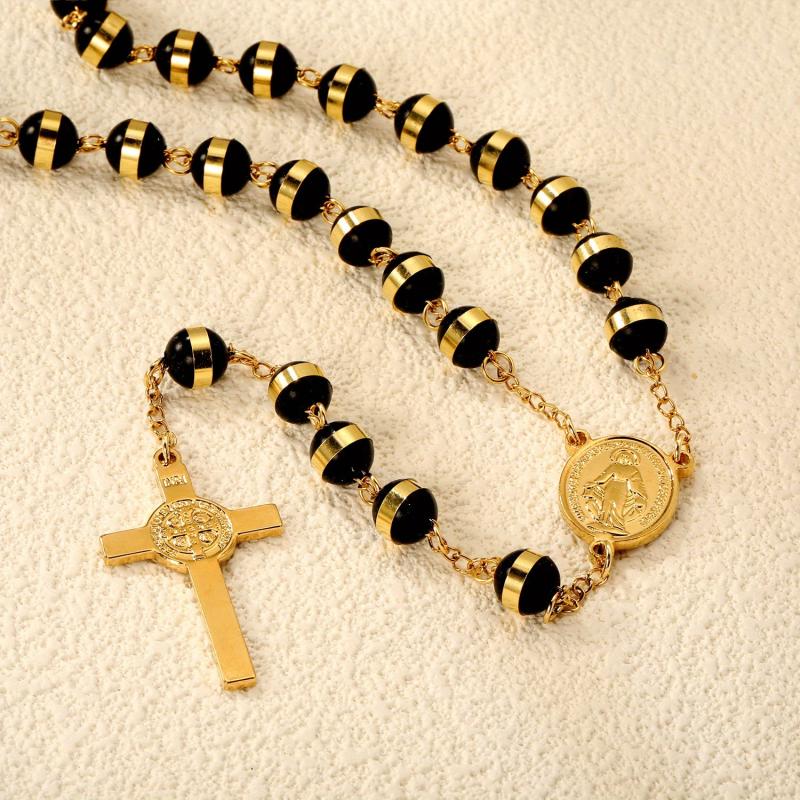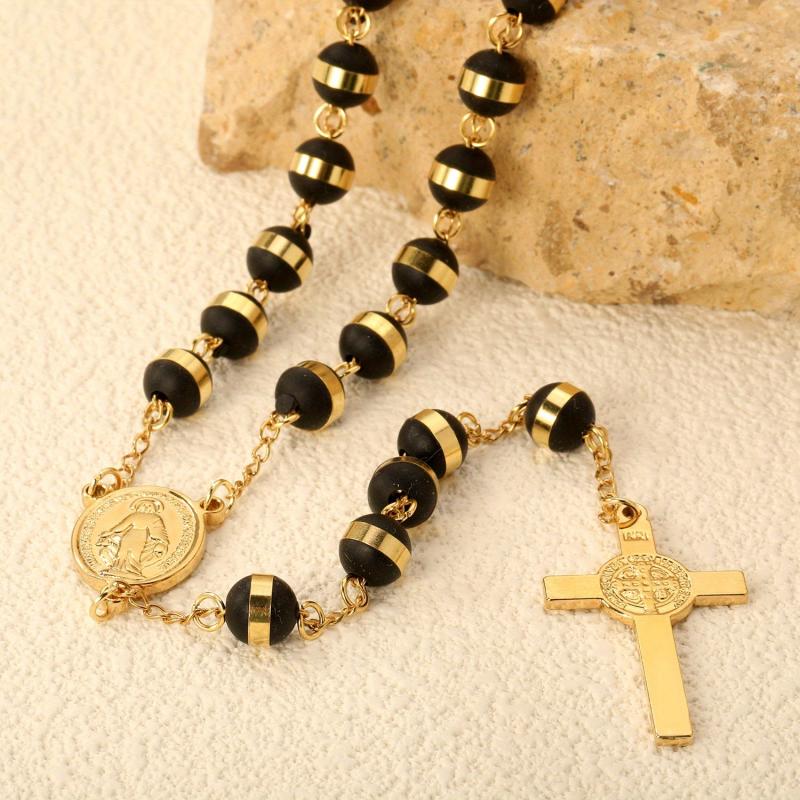 Vintage stainless steel rosary cross pendant necklace that adds a classic hip hop touch. Ideal for Easter celebrations or daily wear, making it a perfect gift for loved ones.