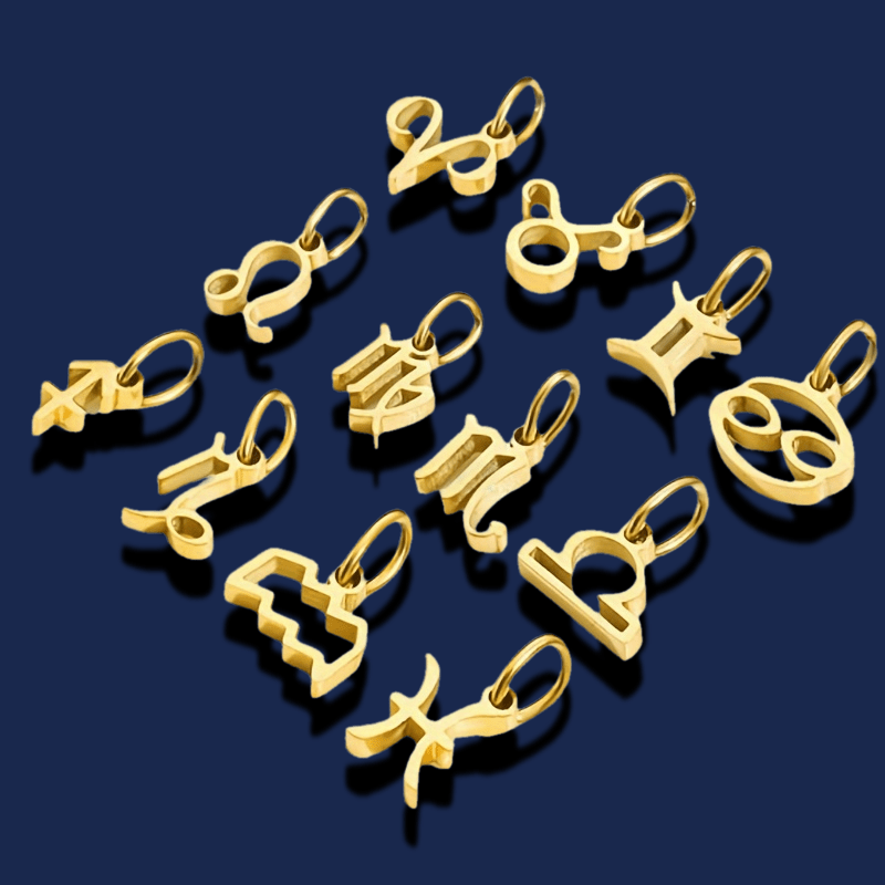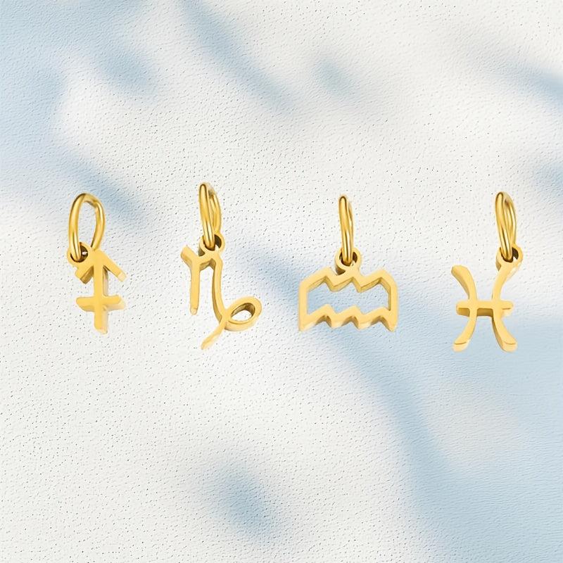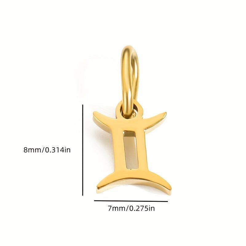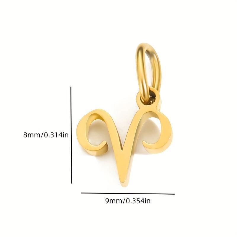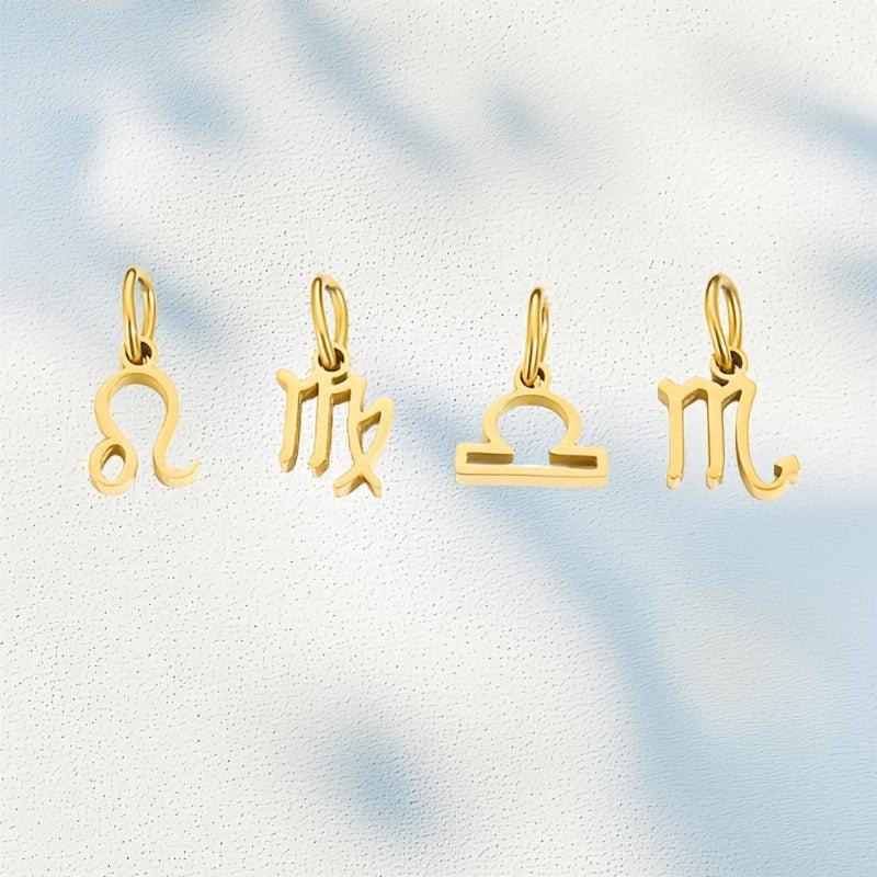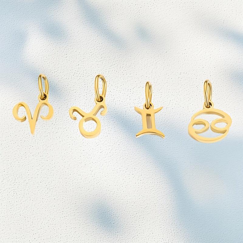 This DIY jewelry charm pendant features 12 astrological symbols in a golden tone. Create personalized jewelry pieces with this stainless steel pendant.