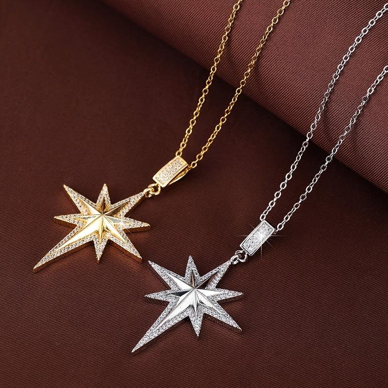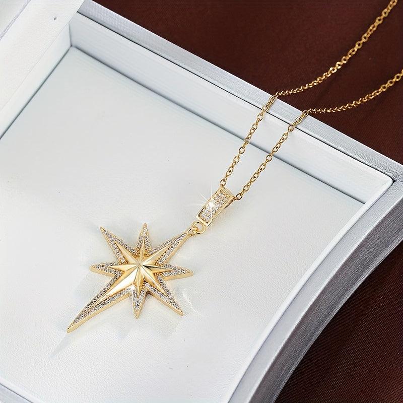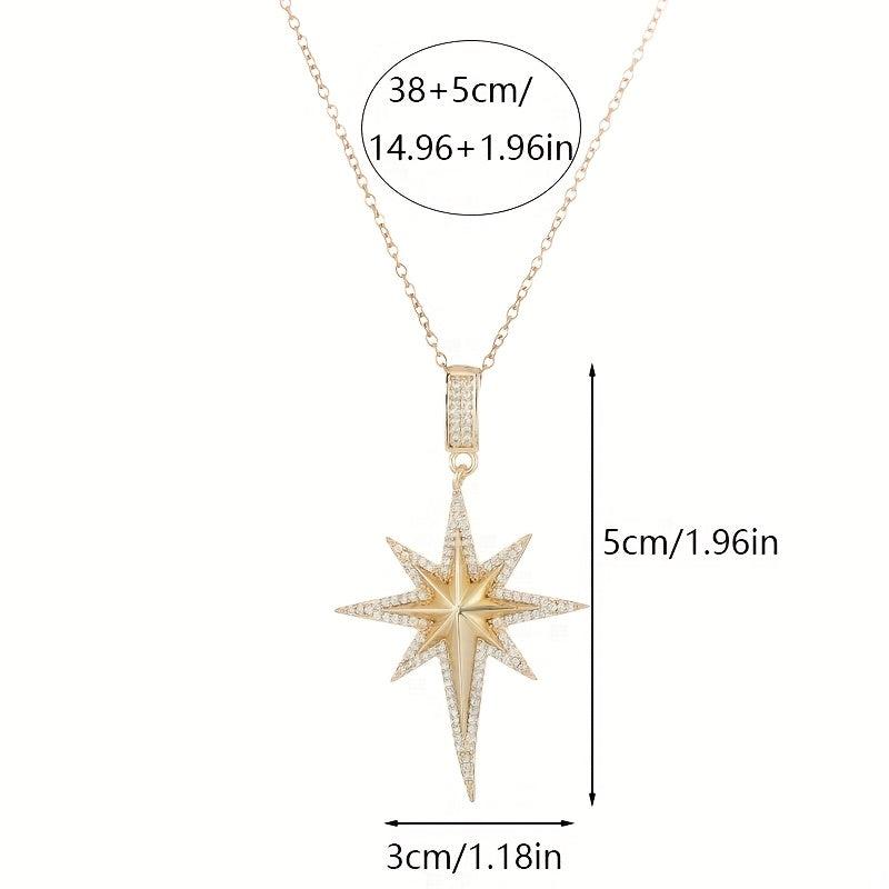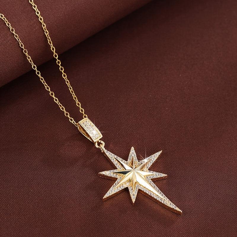 Star Pendant Necklace with Cubic Zirconia Golden Tone Chain for Women