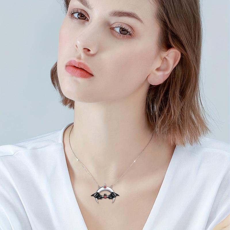 Add a touch of gothic elegance to your style with this sterling silver bat necklace. Perfect for Halloween or everyday wear, this necklace makes a great gift for any woman who appreciates unique jewelry.