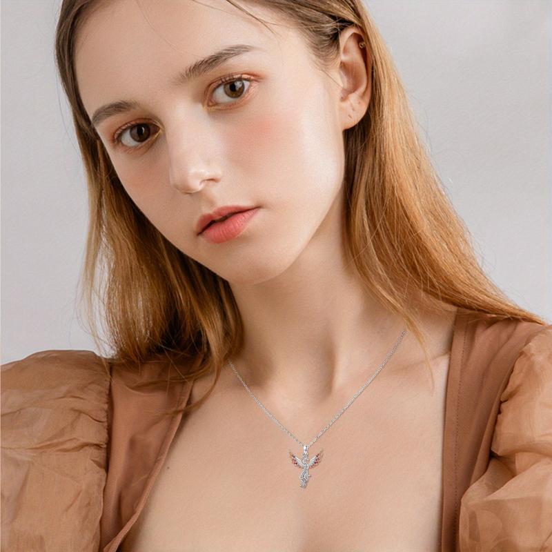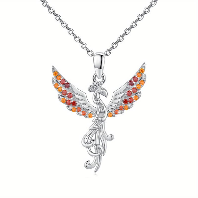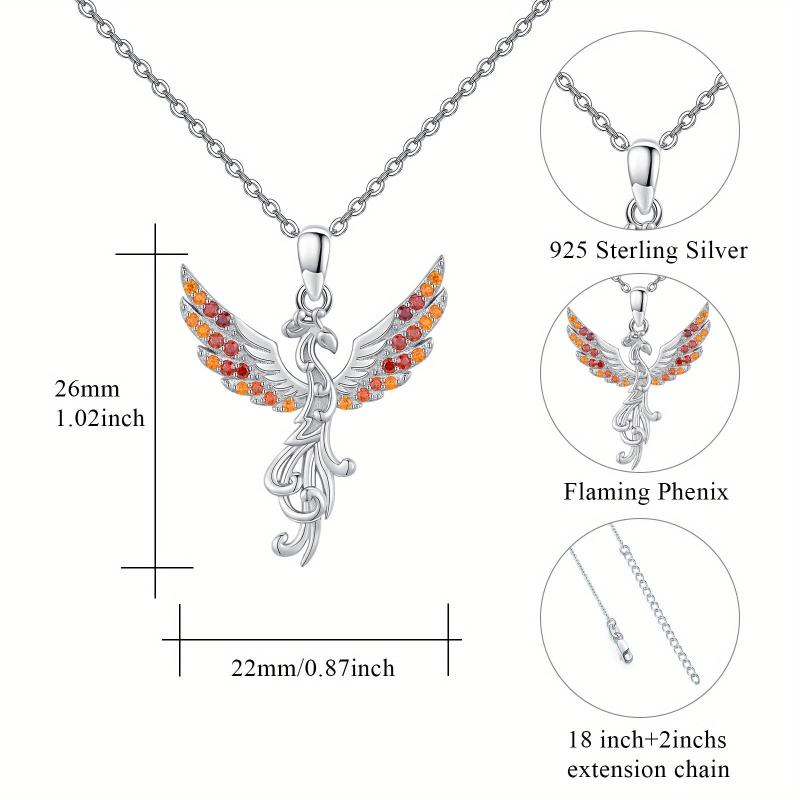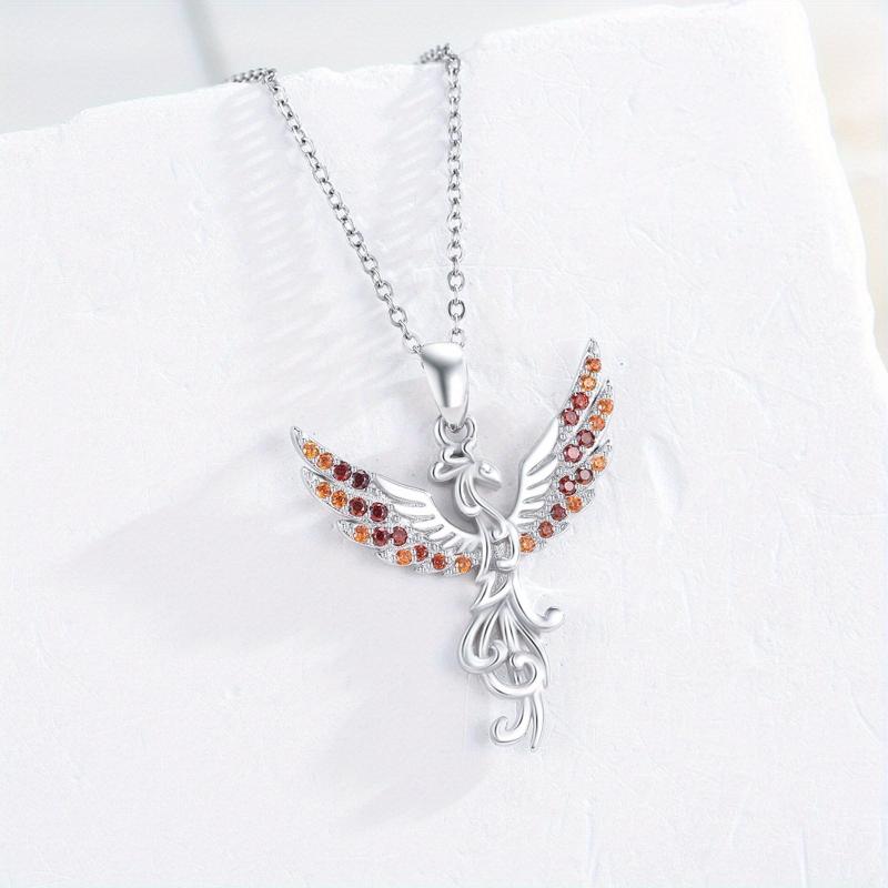 Elegant phoenix necklace crafted from 925 sterling silver with a stunning garnet phoenix pendant and cubic zirconia accents. Perfect for Christmas, birthday gifts, or any special occasion.