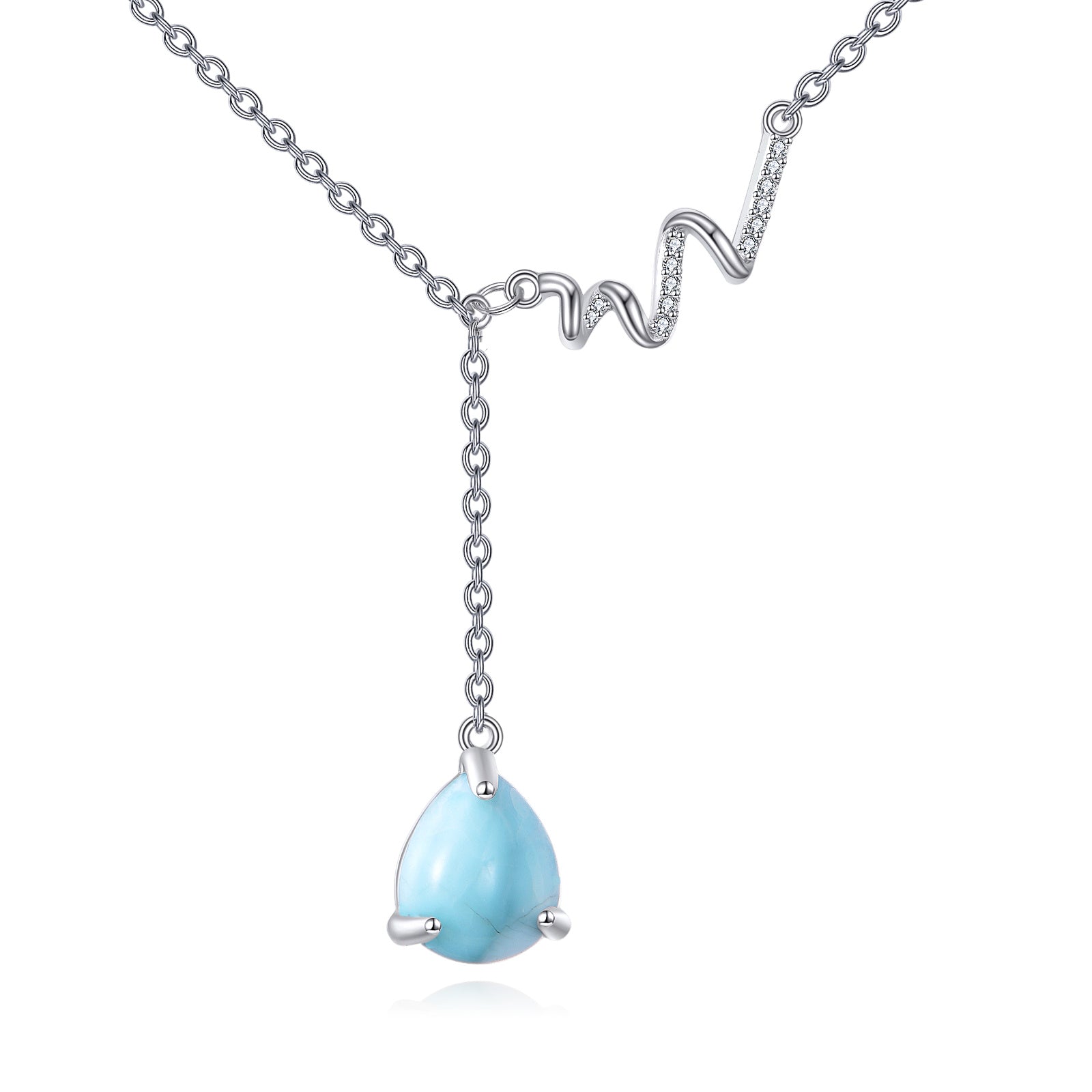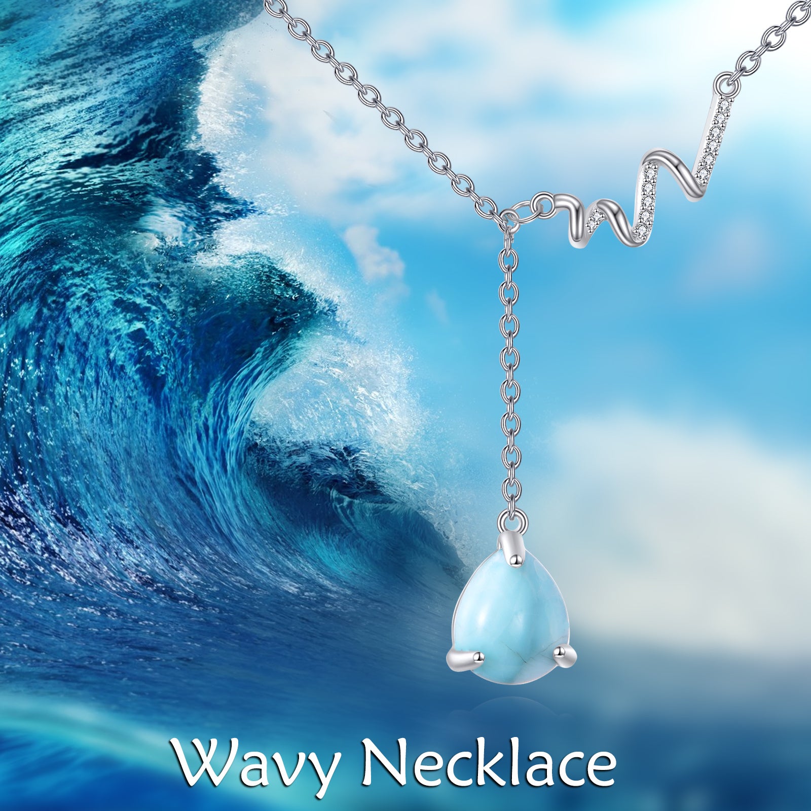 Sterling Silver Larimar Wave Necklace Y Shape Beach Jewelry