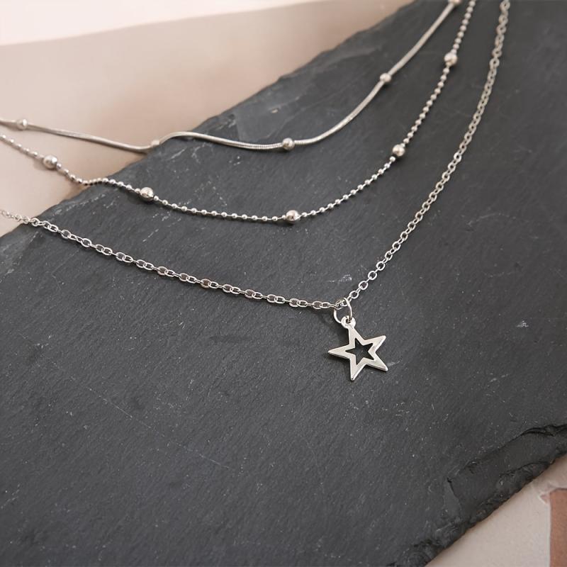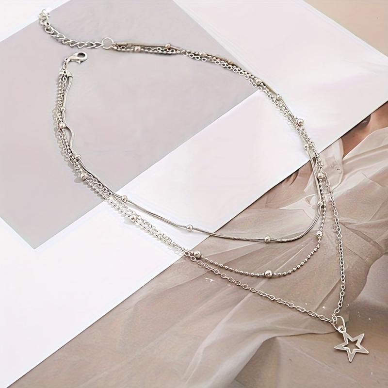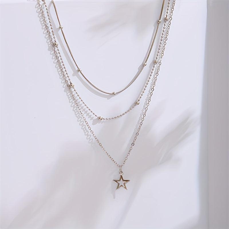 Enhance your casual attire with this minimalist three layer hollow star pendant necklace. Perfect for adding a touch of elegance to your outfit.