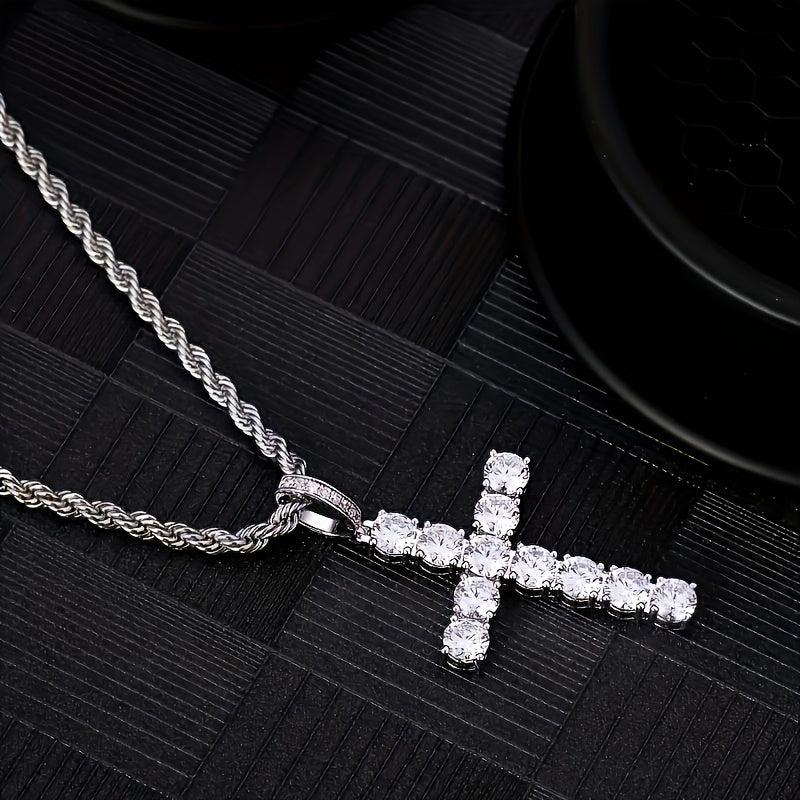 This pendant necklace is perfect for parties and showcases a synthetic zirconia inlaid cross design suitable for both men and women. Embrace a punk style with this unique accessory.