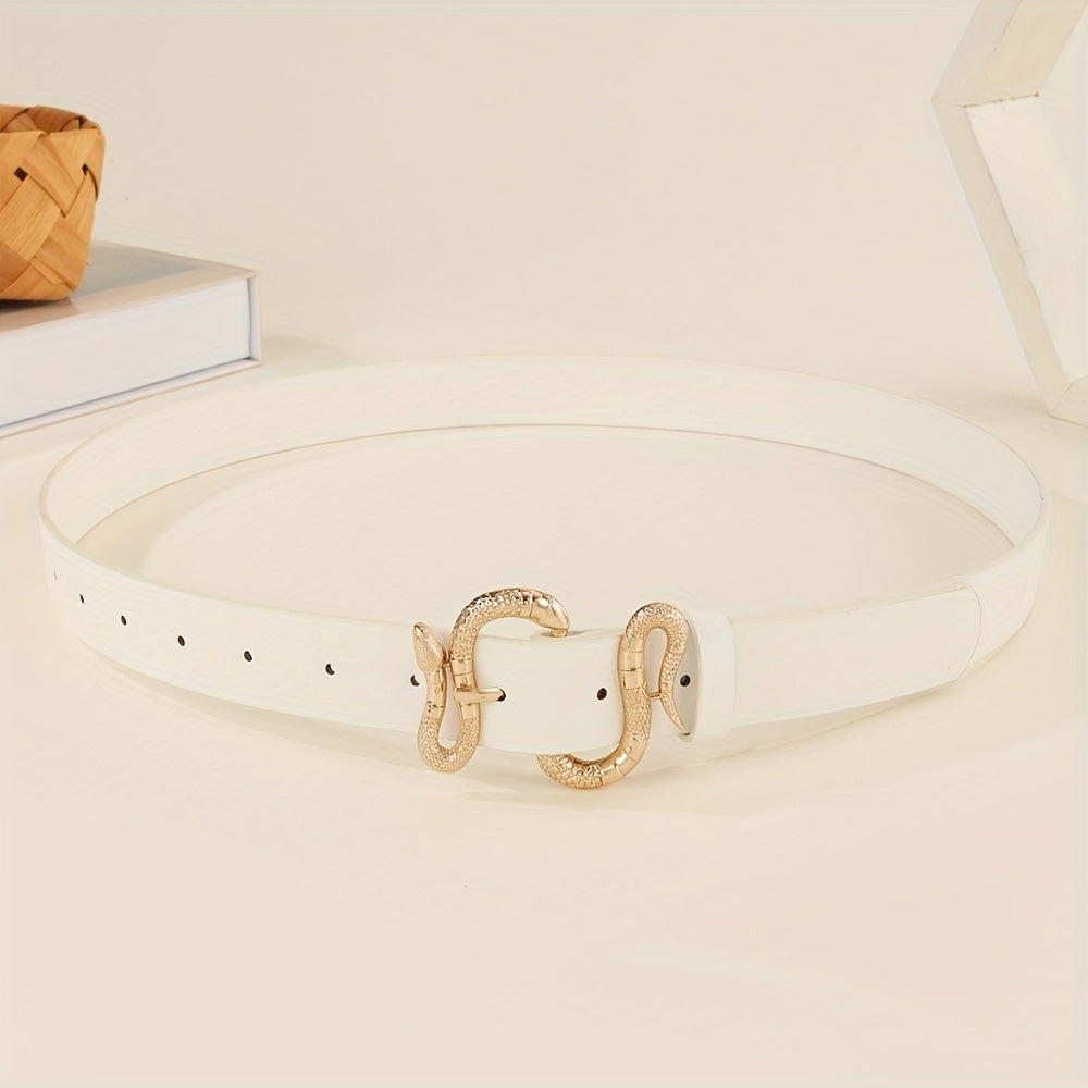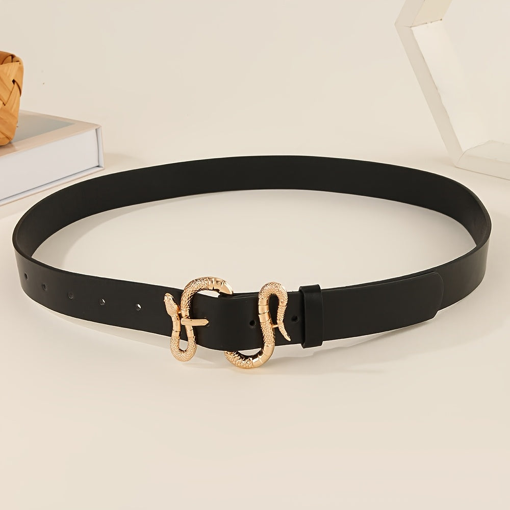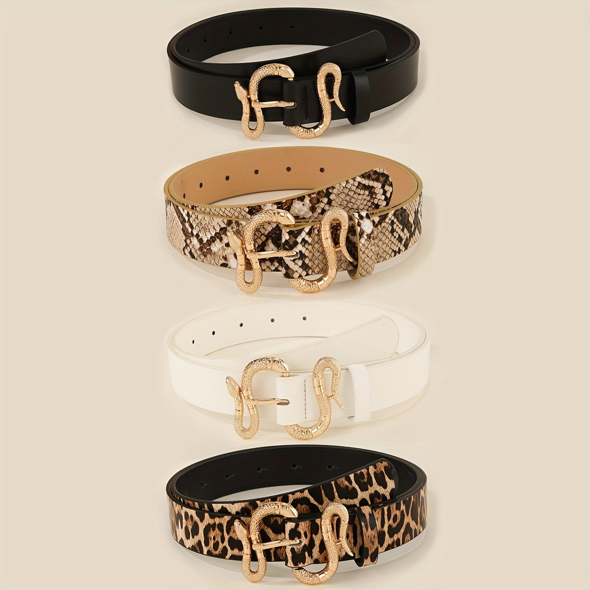 Add a touch of wild style to your outfit with this trendy belt featuring a snake buckle, leopard print design, and golden toned metal accents. Perfect for casual wear, beach outings, and festivals.