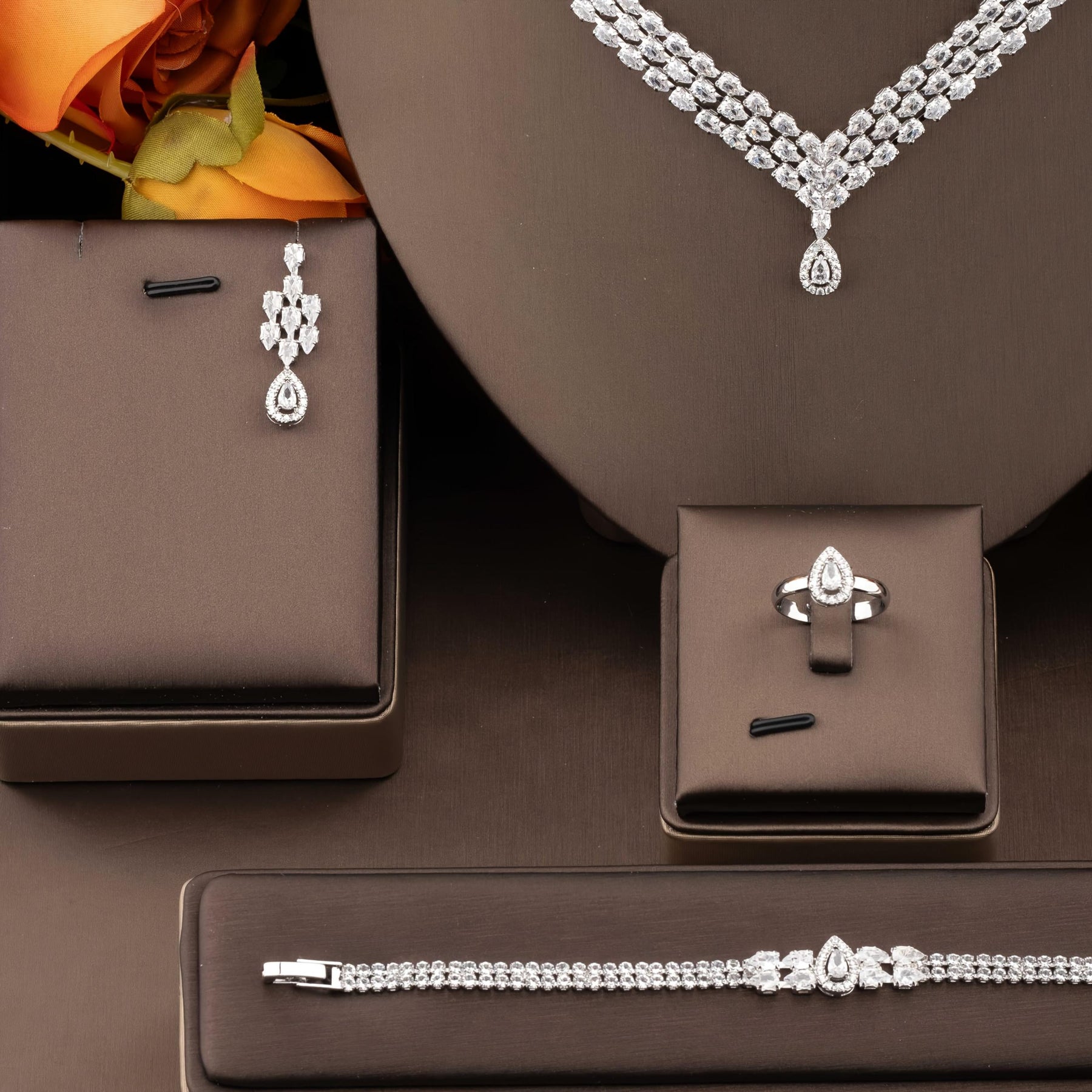 Elevate your style with this stunning teardrop pendant featuring high-quality inlaid cubic zirconia. Perfect for parties and banquets.