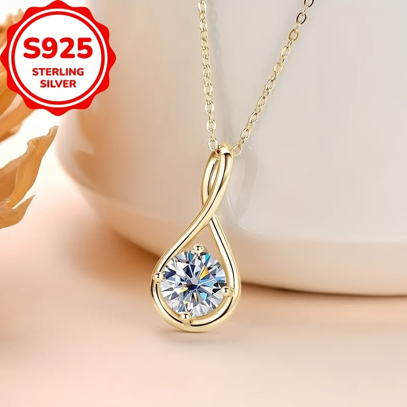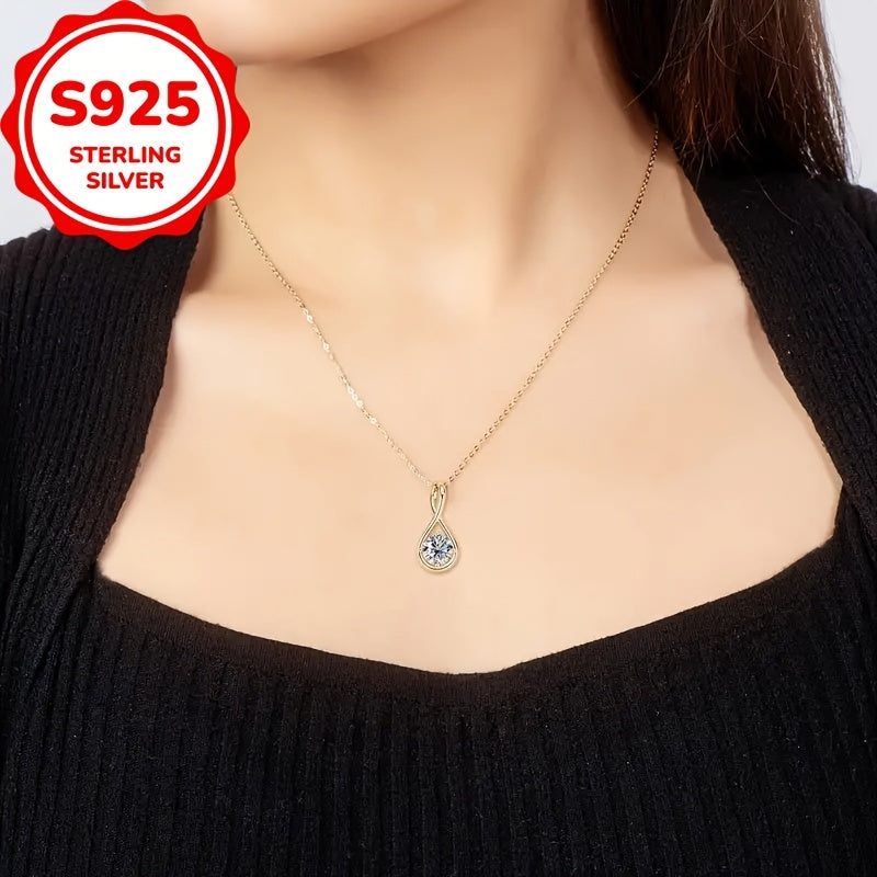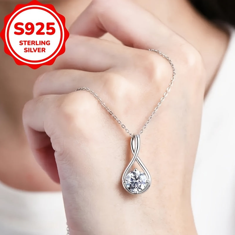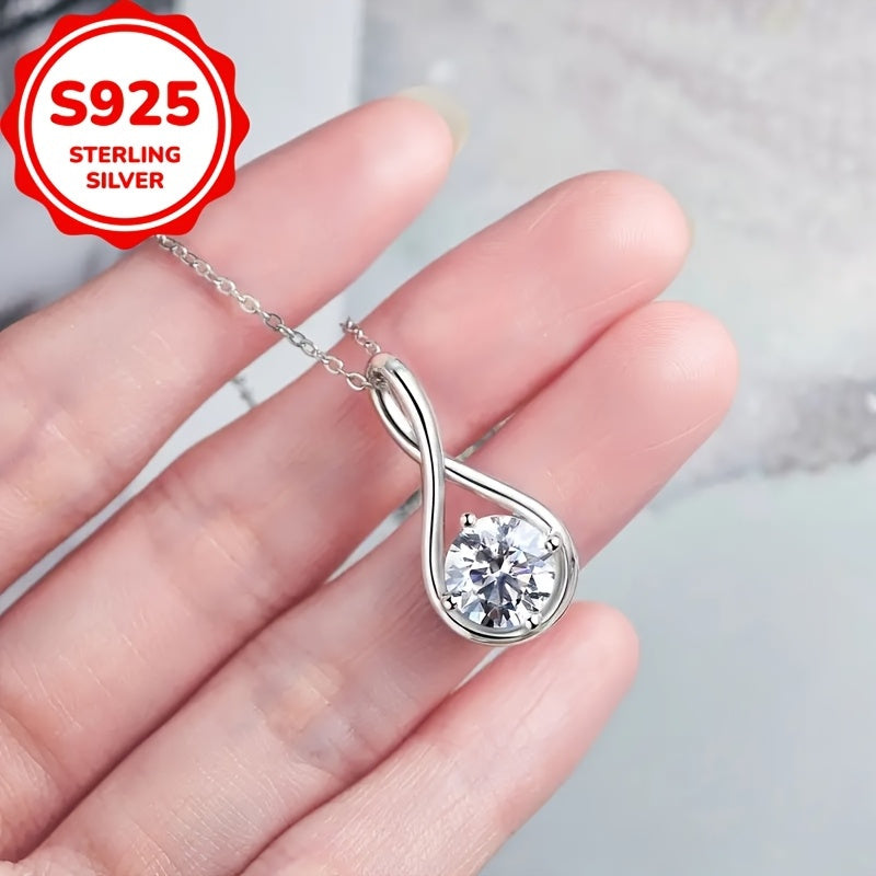 Elegant 925 Sterling Silver Necklace featuring synthetic zirconia. Ideal for bridal wear or wedding attire. Makes a perfect gift for special occasions.