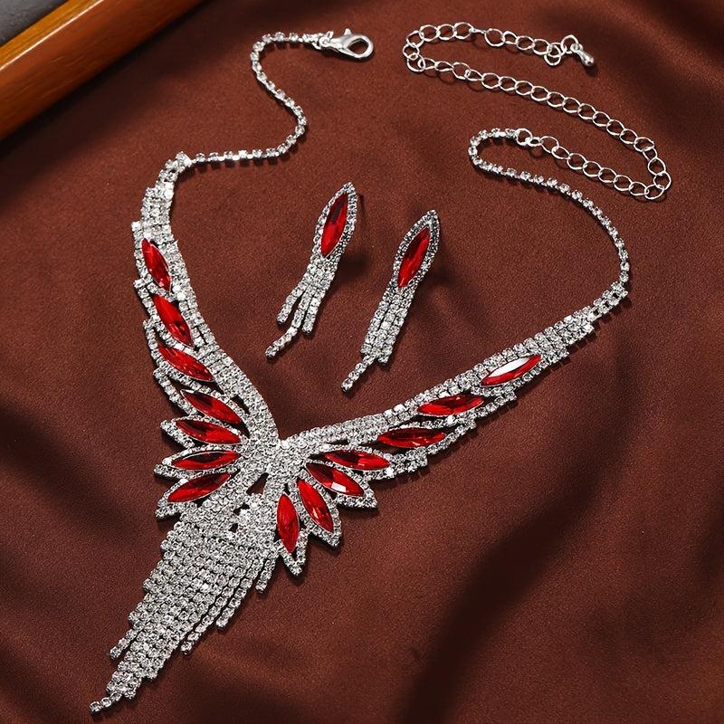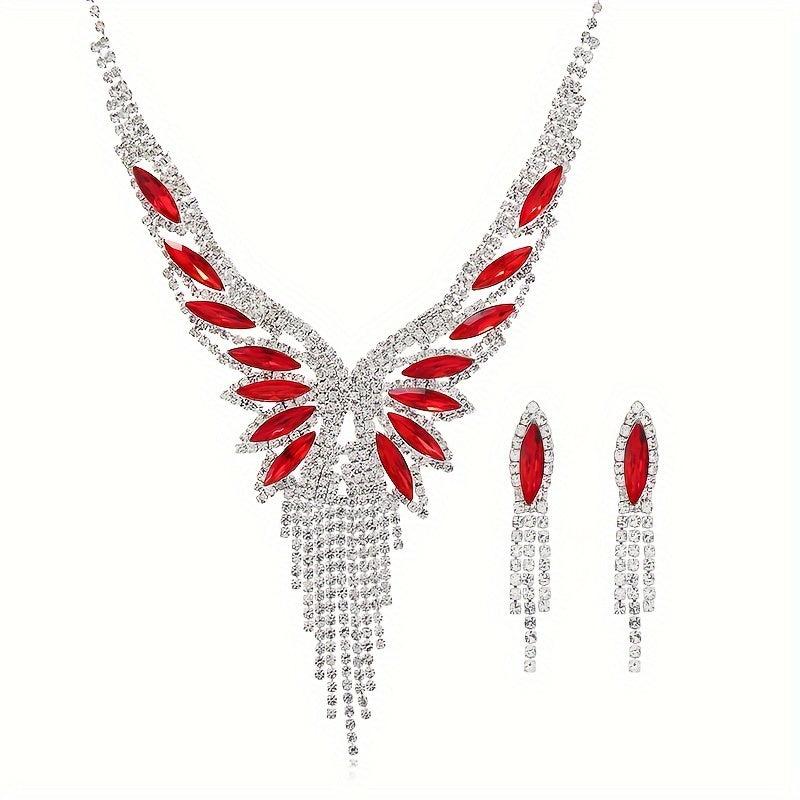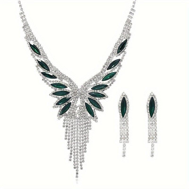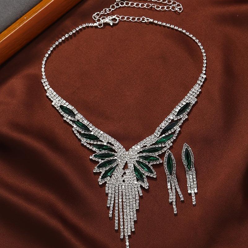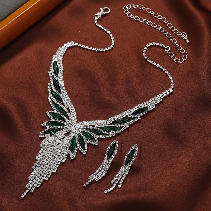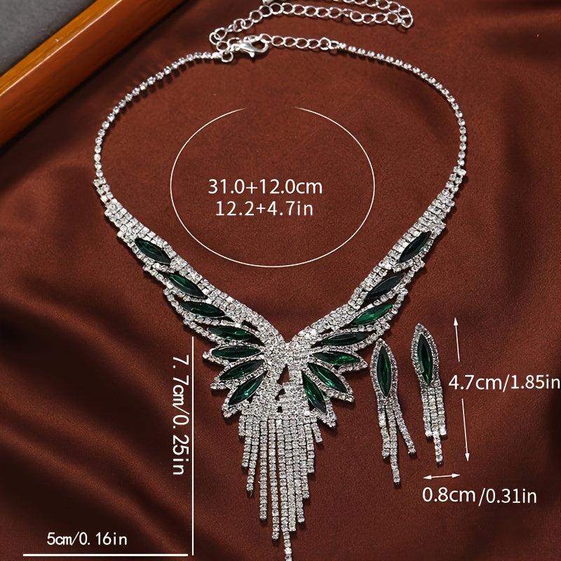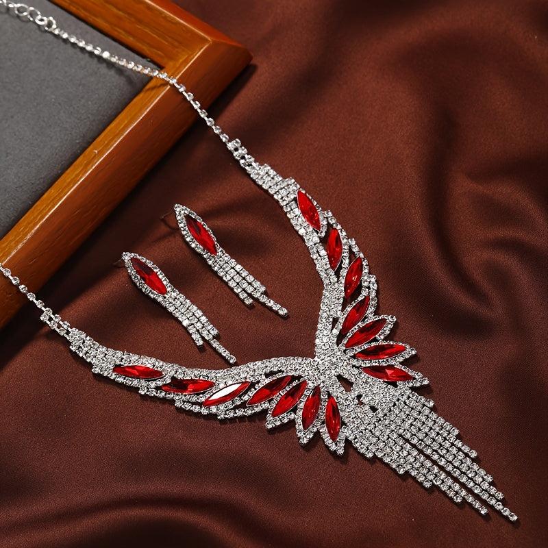 Stunning rhinestone teardrop tassel jewelry set perfect for bridal wear, evening gown, and banquet. Add sparkle to your outfit with this elegant accessory.