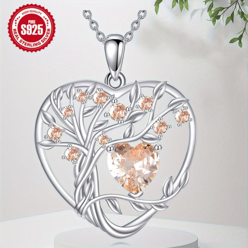 This stunning Tree of Life necklace features a heart-shaped November birthstone pendant in sterling silver. Perfect for anniversary or birthday gifts for women.