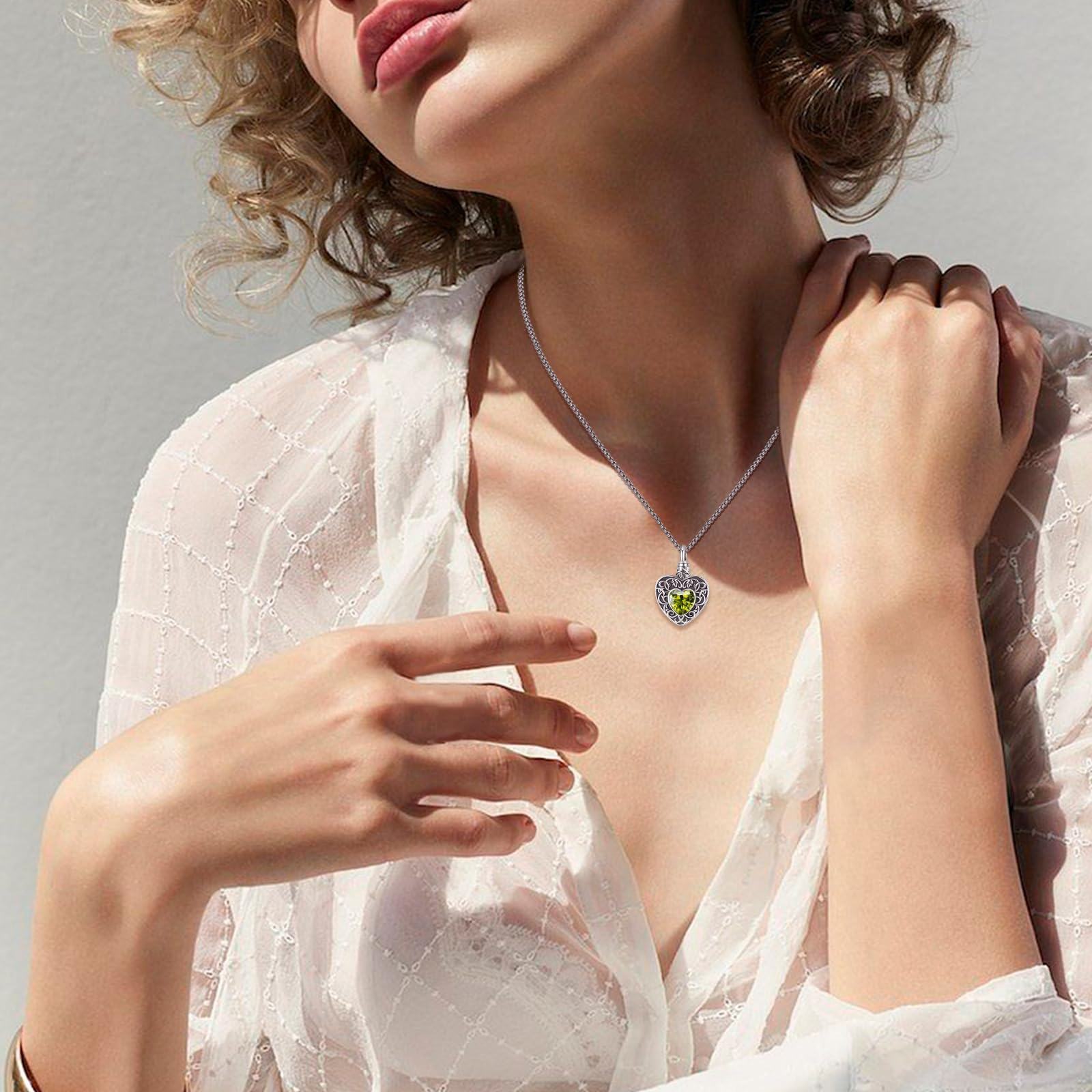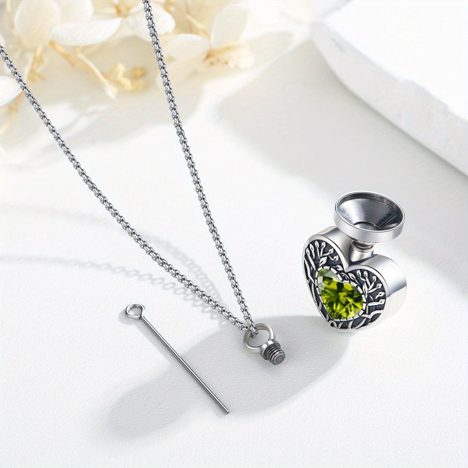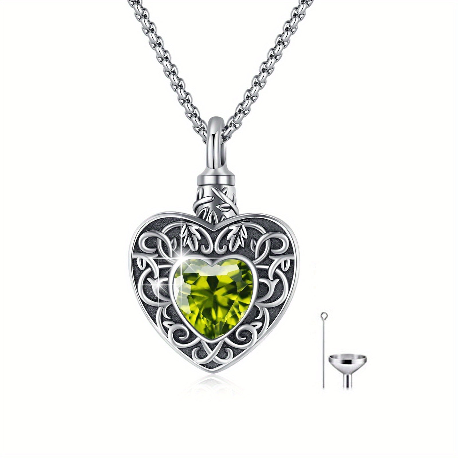 This elegant teardrop shaped urn necklace features a Tree of Life design with a September birthstone. Crafted from sterling silver, this women's cremation jewellery serves as a beautiful memorial piece.