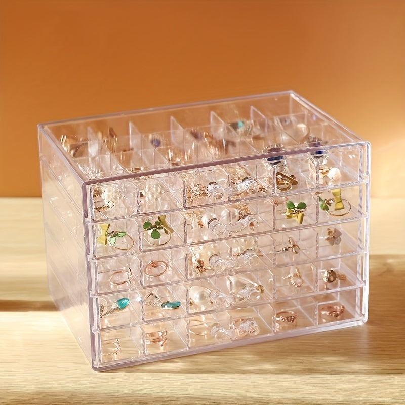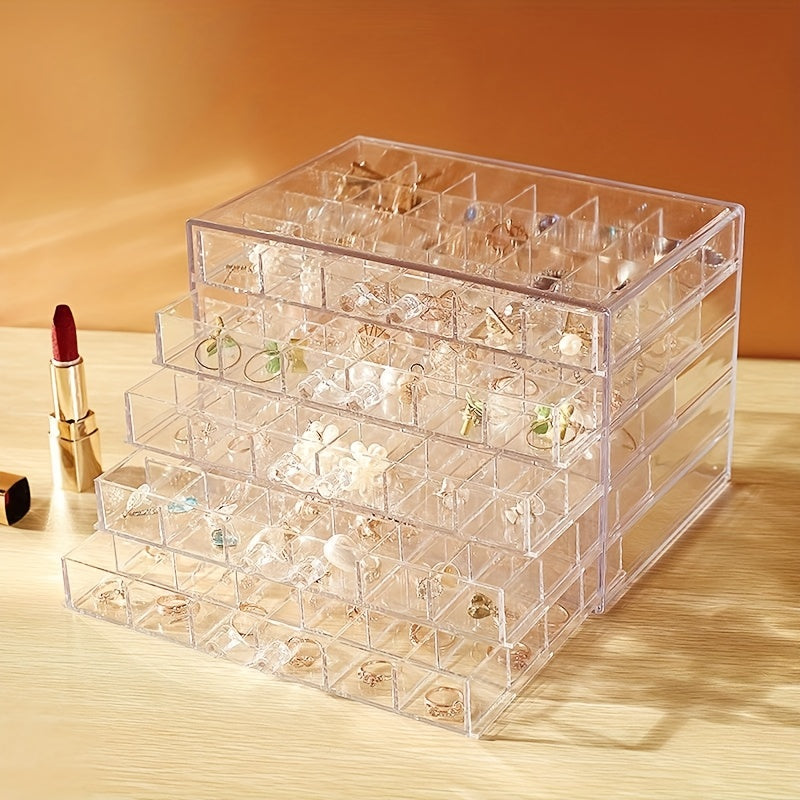 Keep your rings, earrings, and beads organized in this convenient storage box. The transparent design allows you to easily see the contents.