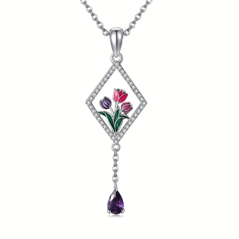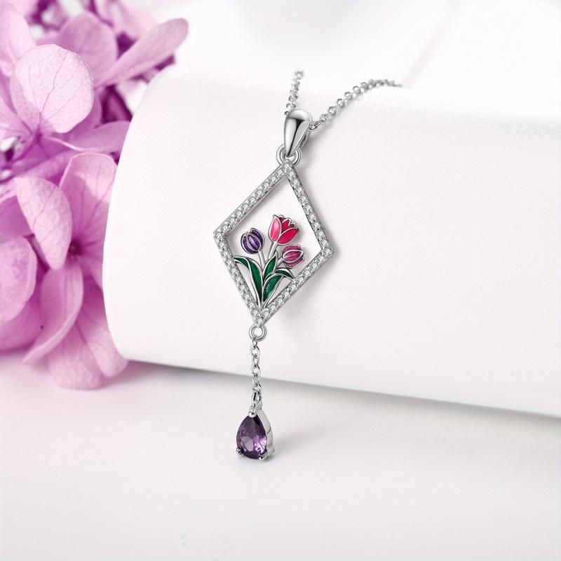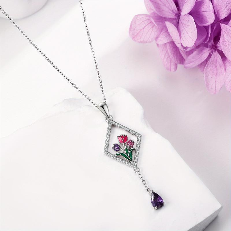 Elegant sterling silver tulip flower pendant necklace perfect for women and girls.