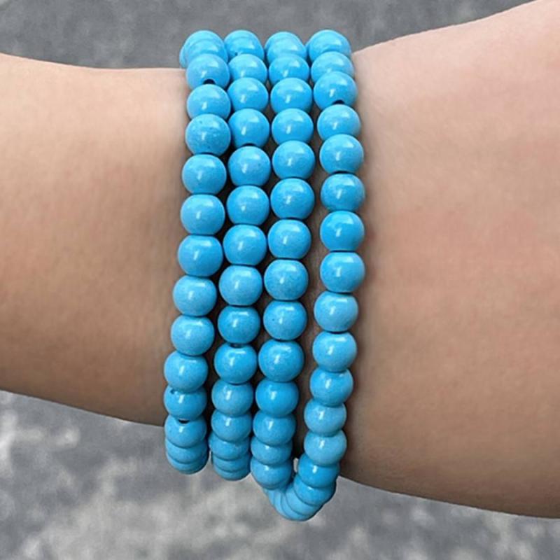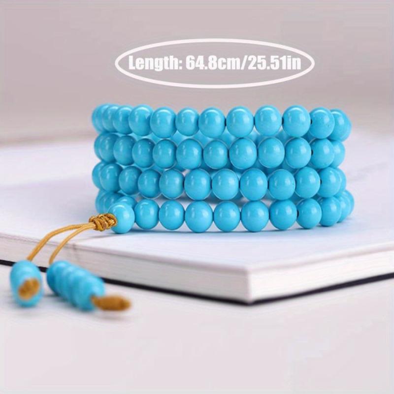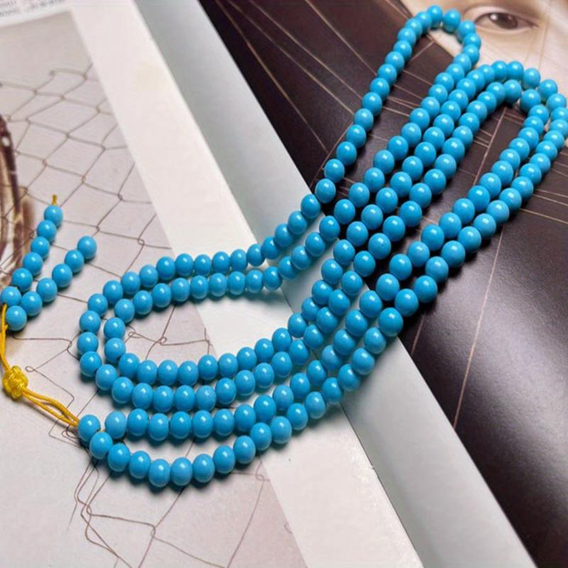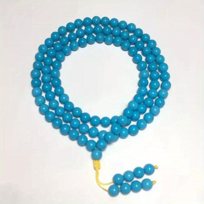 Handmade with 108 6mm turquoise stone beads, this unisex necklace features a yellow cord and tassel. Perfect for everyday wear or as a meaningful gift for a loved one born in June.
