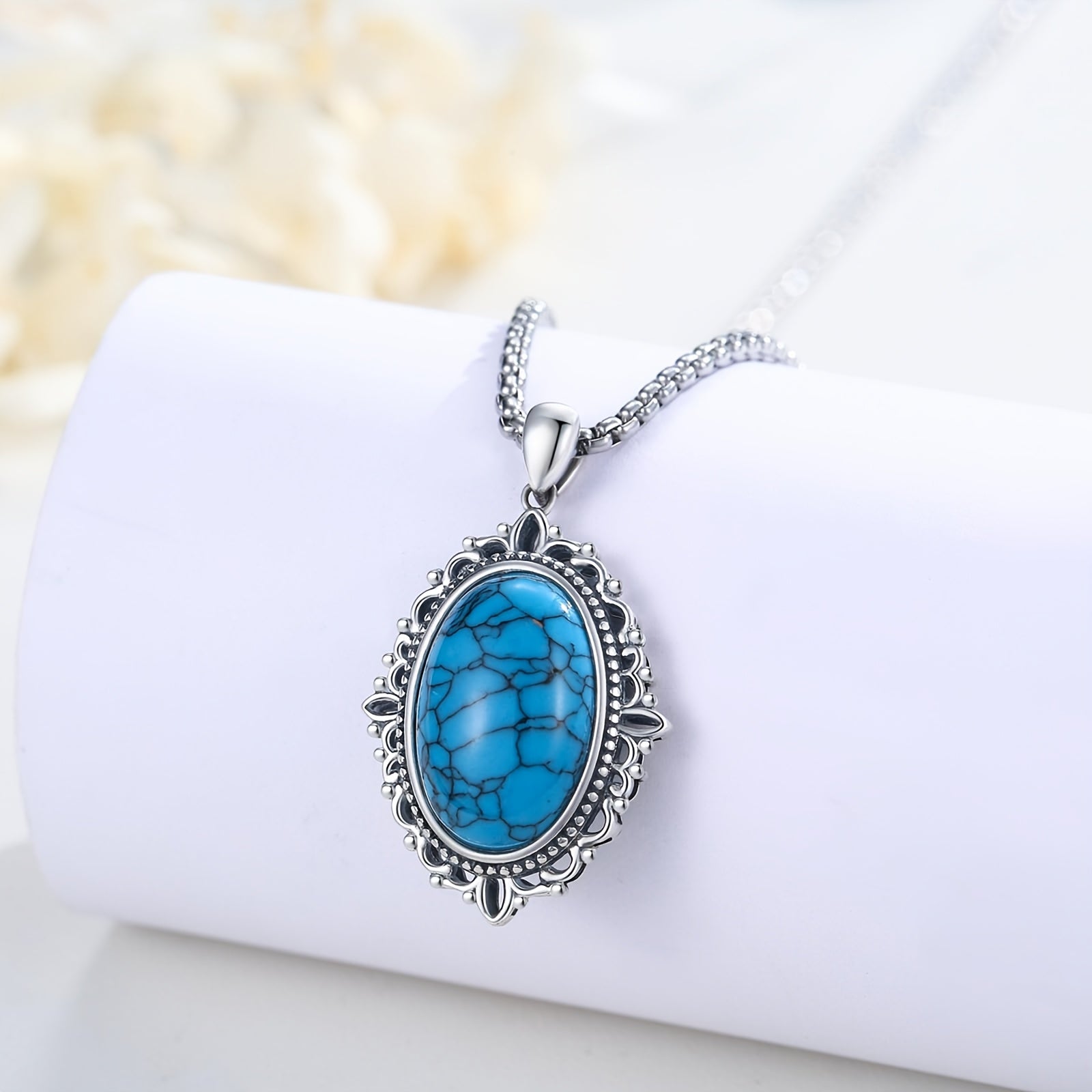 Add a pop of color with this stunning turquoise necklace. Made of premium 925 sterling silver, this necklace features a beautiful flower pendant with a turquoise stone. Perfect for women who love turquoise jewelry.