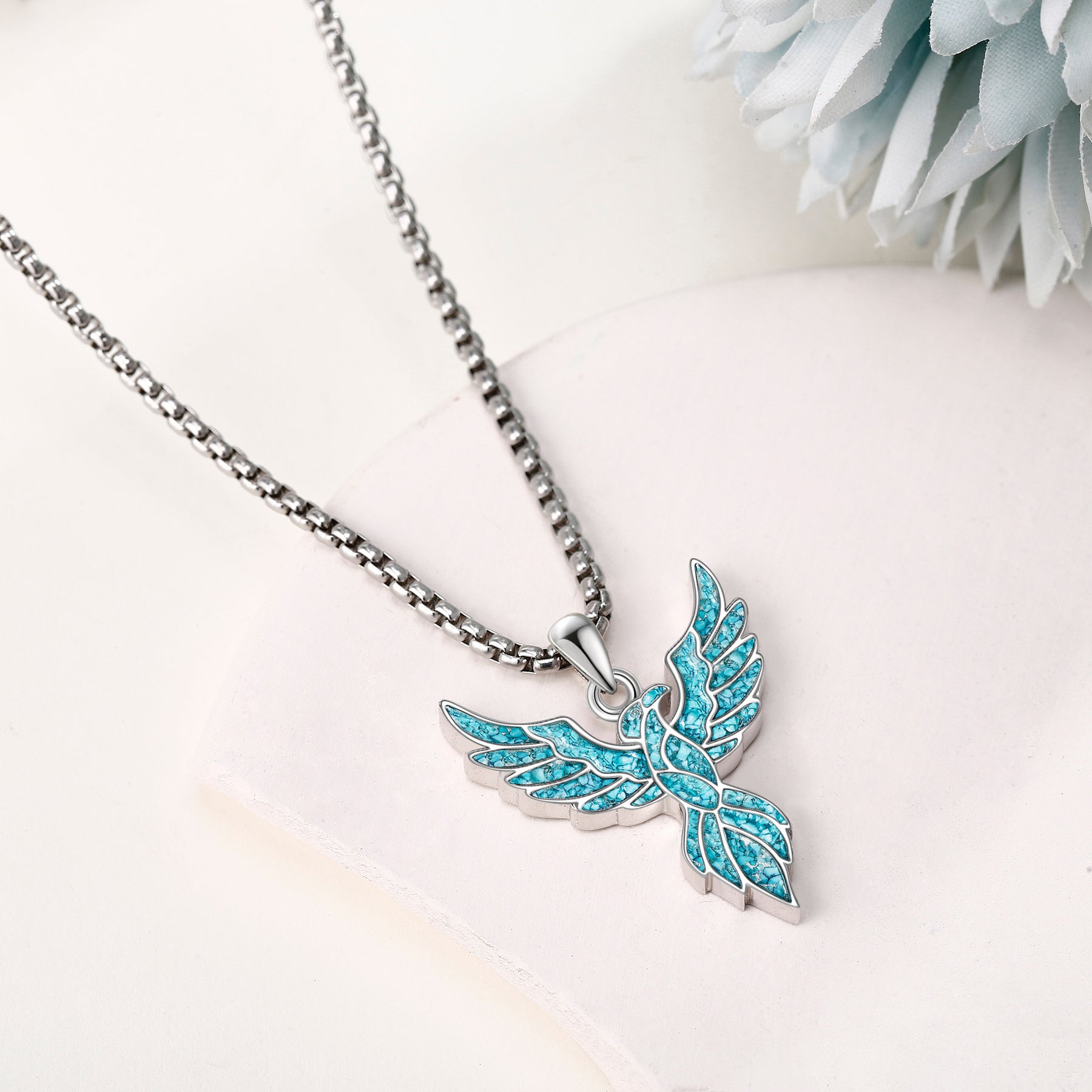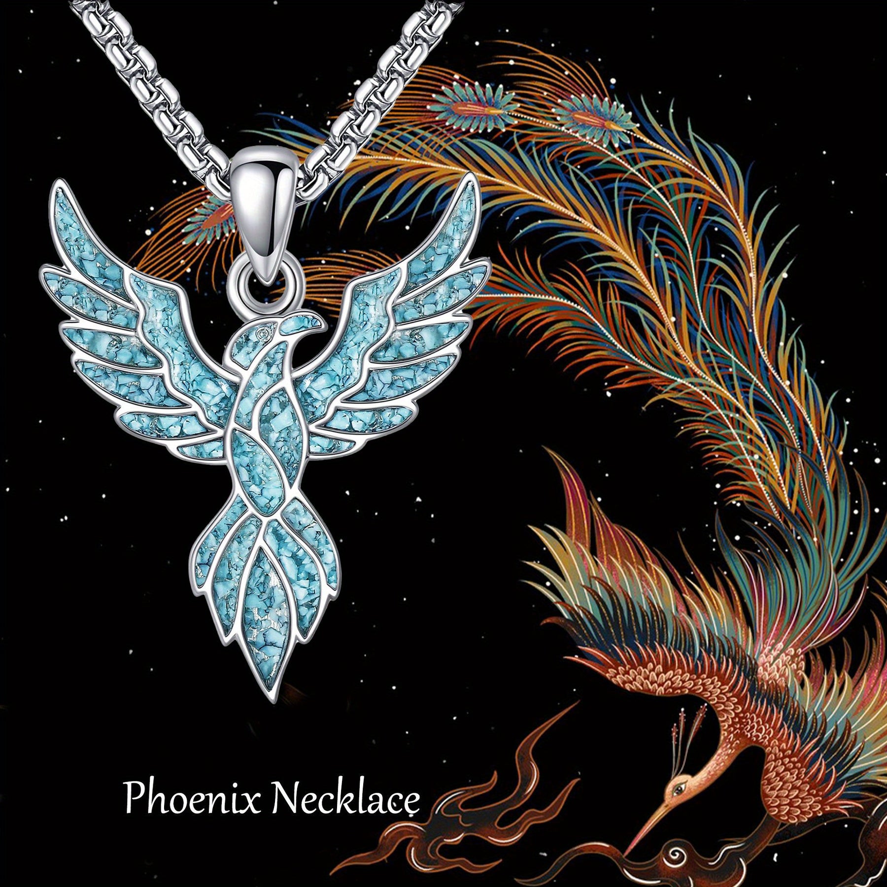 Enhance your style with this stunning Phoenix Necklace crafted from sterling silver and synthetic turquoise. Perfect for both men and women.