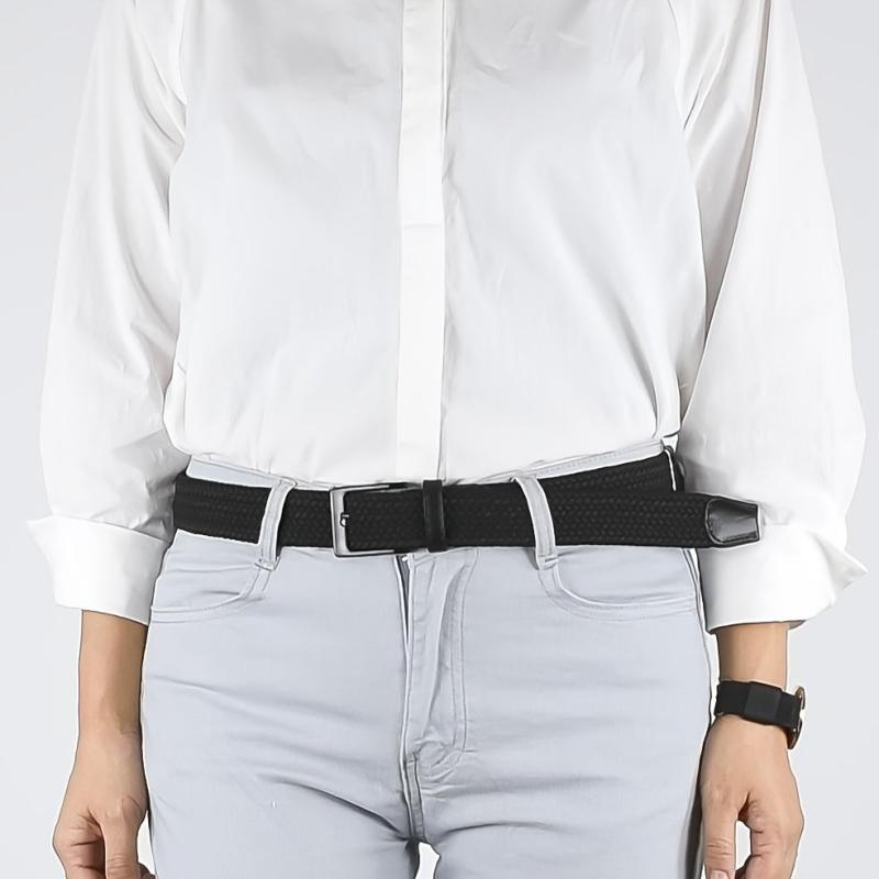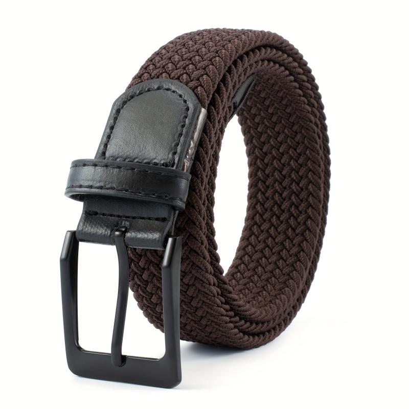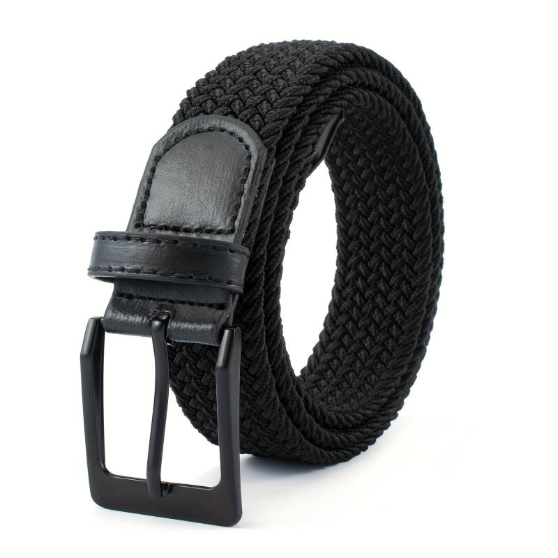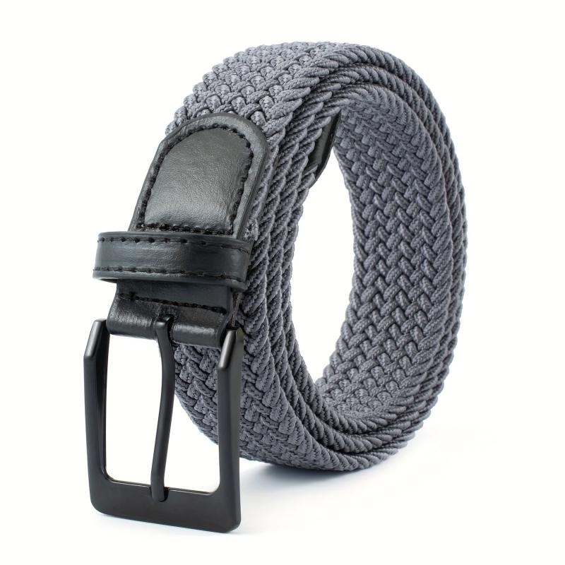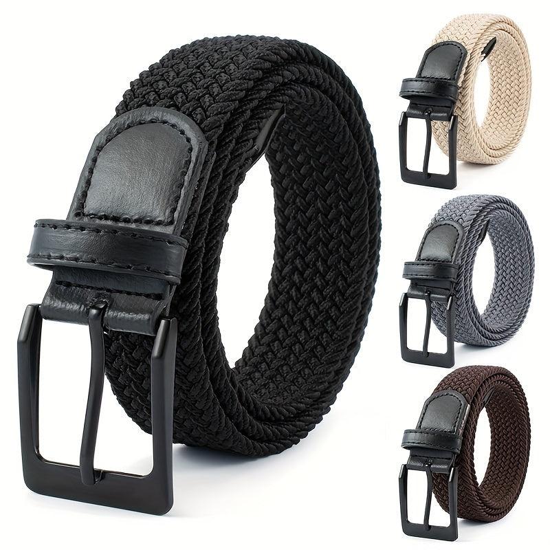 This solid canvas belt features a square pin buckle and braided design, perfect for both men and women. Ideal for casual wear with jeans or pants.