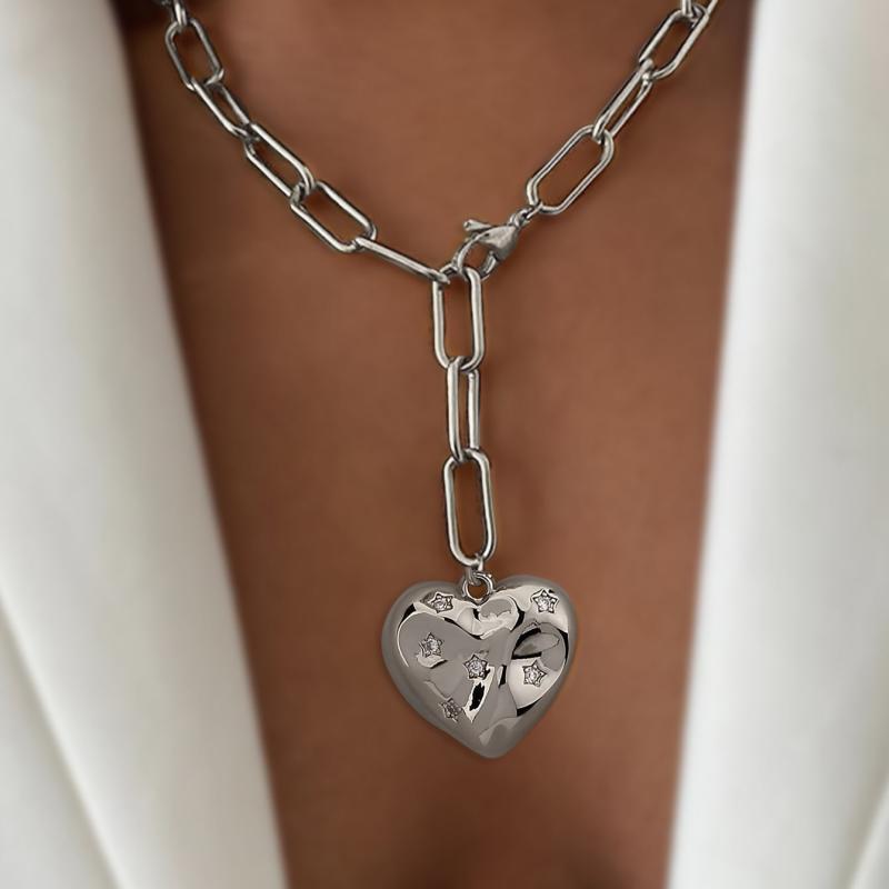 Adorn yourself with this classic synthetic zirconia heart-shaped pendant paperclip necklace, perfect for Valentine's Day.