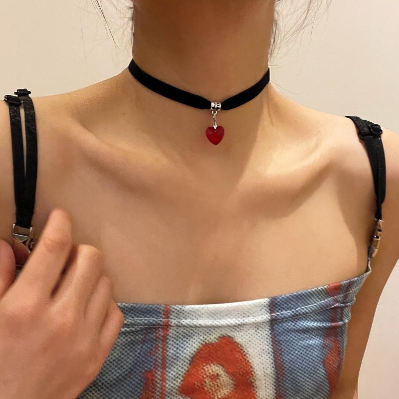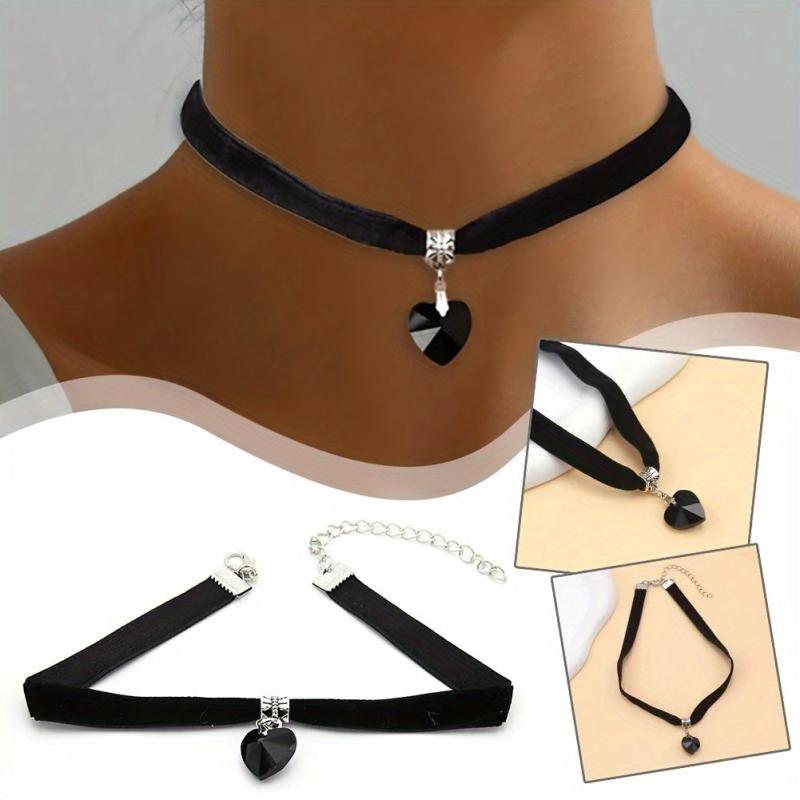 Add a touch of elegance to your outfit with this velvet necklace featuring a heart pendant. Perfect for both casual and formal occasions.