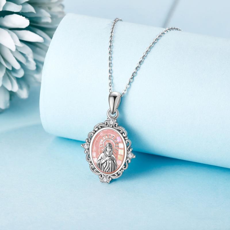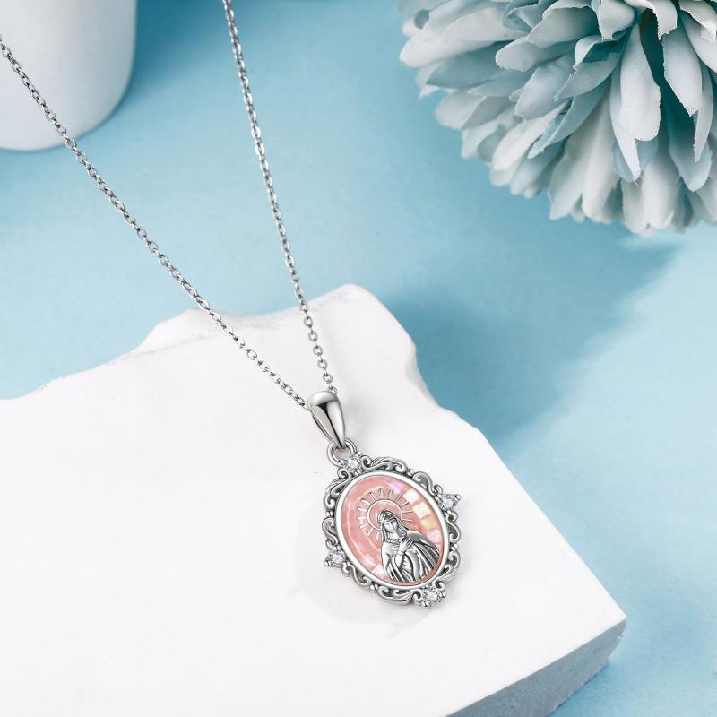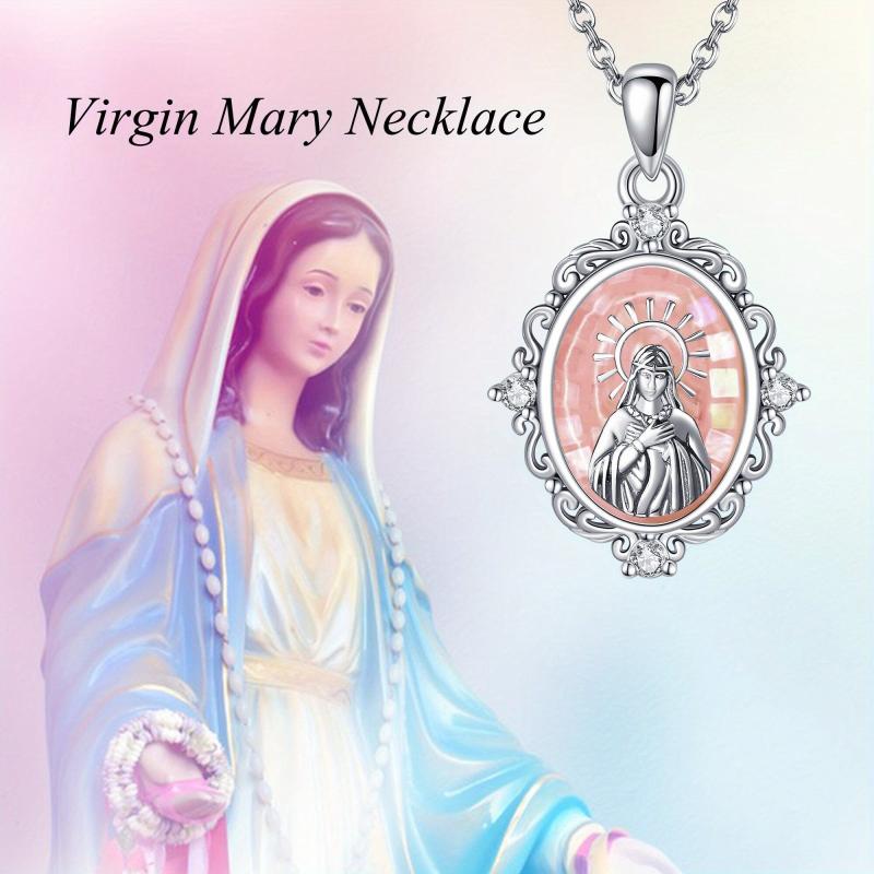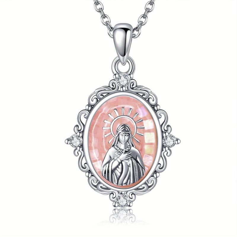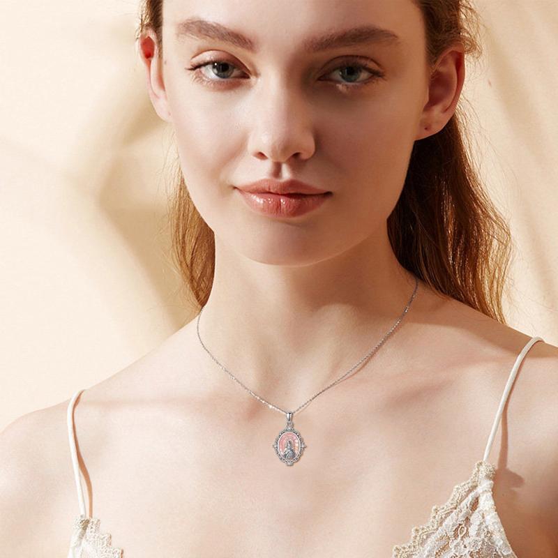 This stunning 925 sterling silver necklace features the image of Guadalupe Virgin. It is a beautiful piece of Christian jewelry that adds a touch of elegance to any outfit.