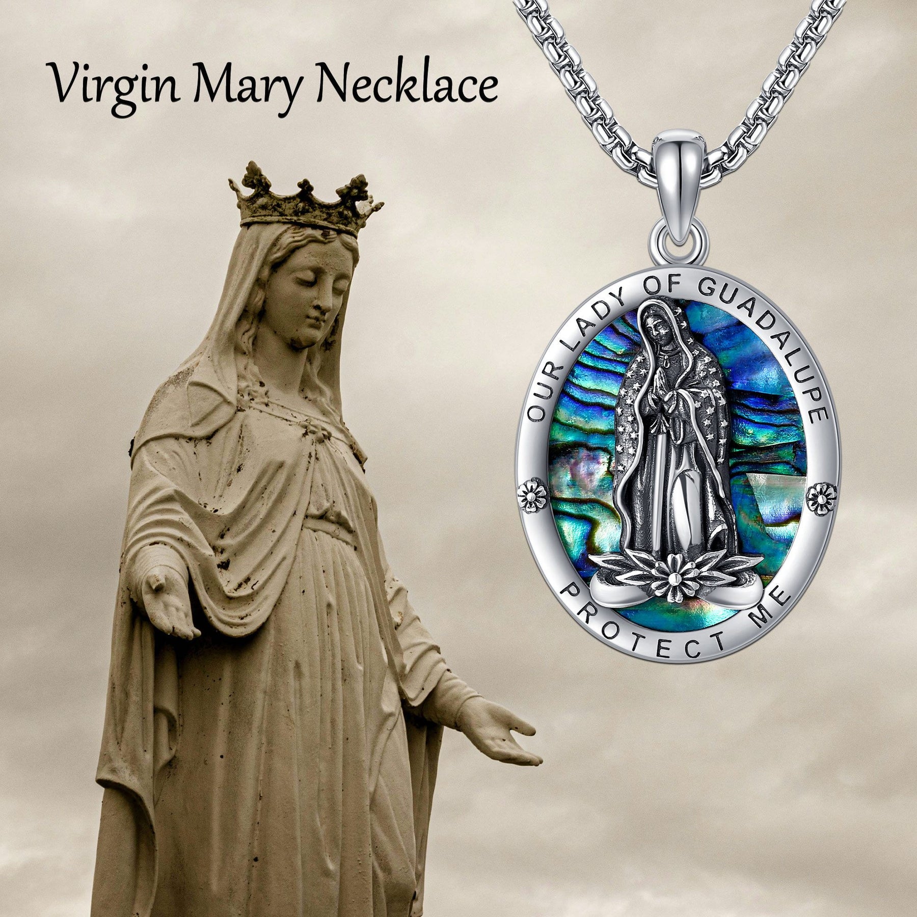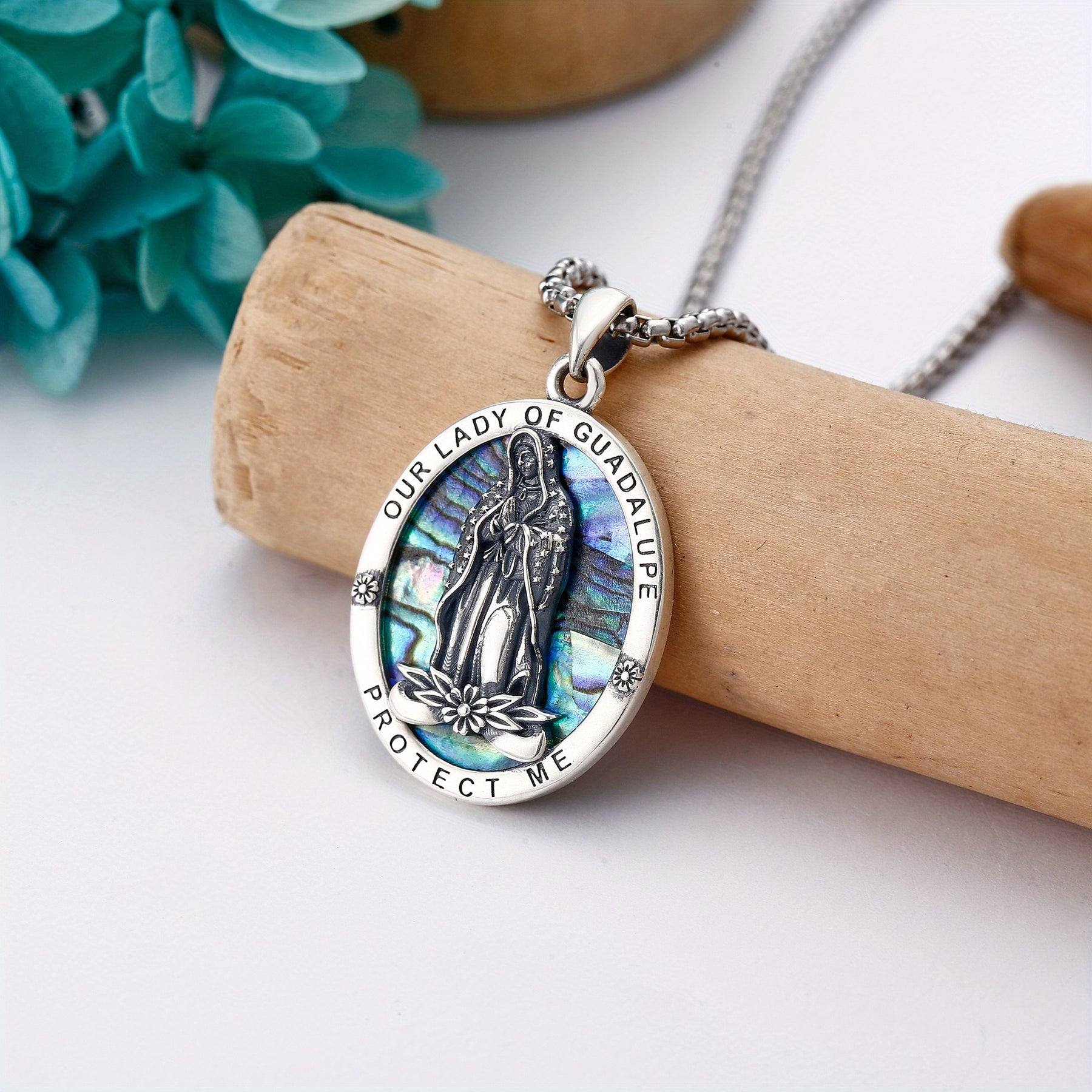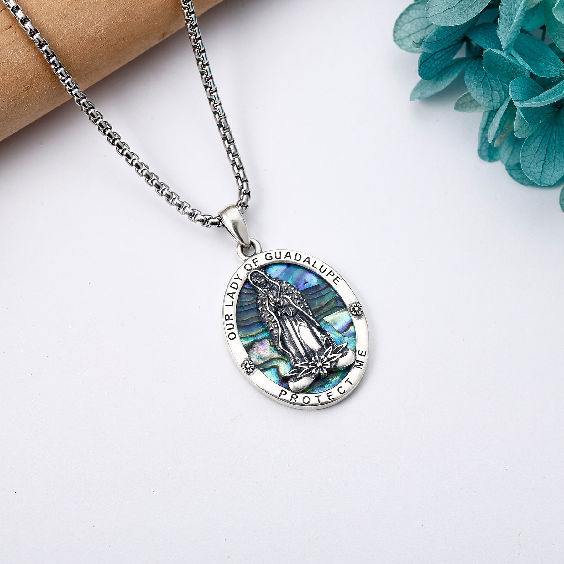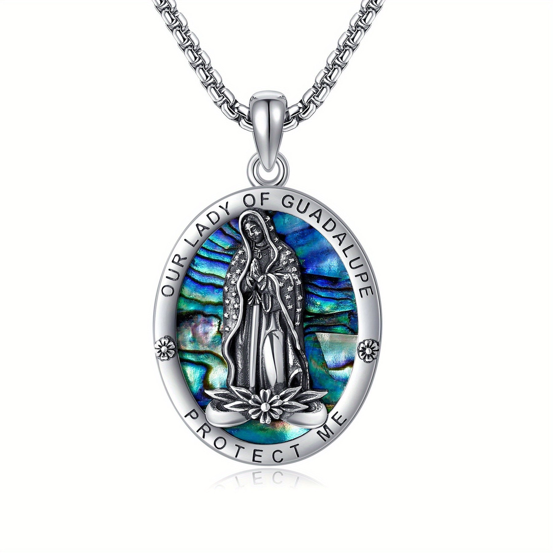 This stunning Virgin Mary necklace features a Sterling Silver pendant of Virgen De Guadalupe, ideal for women seeking elegant religious jewelry.