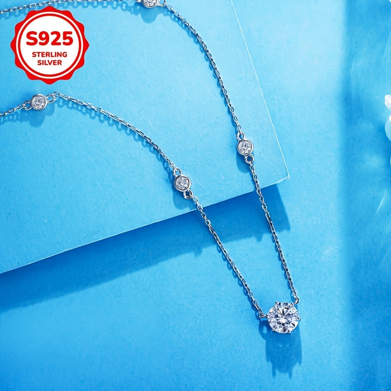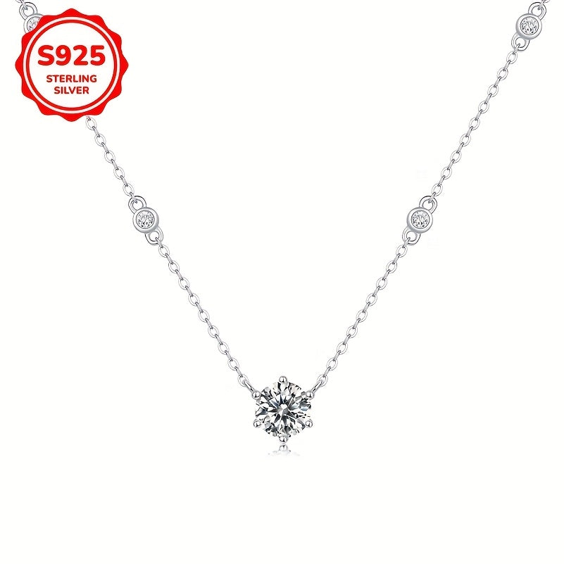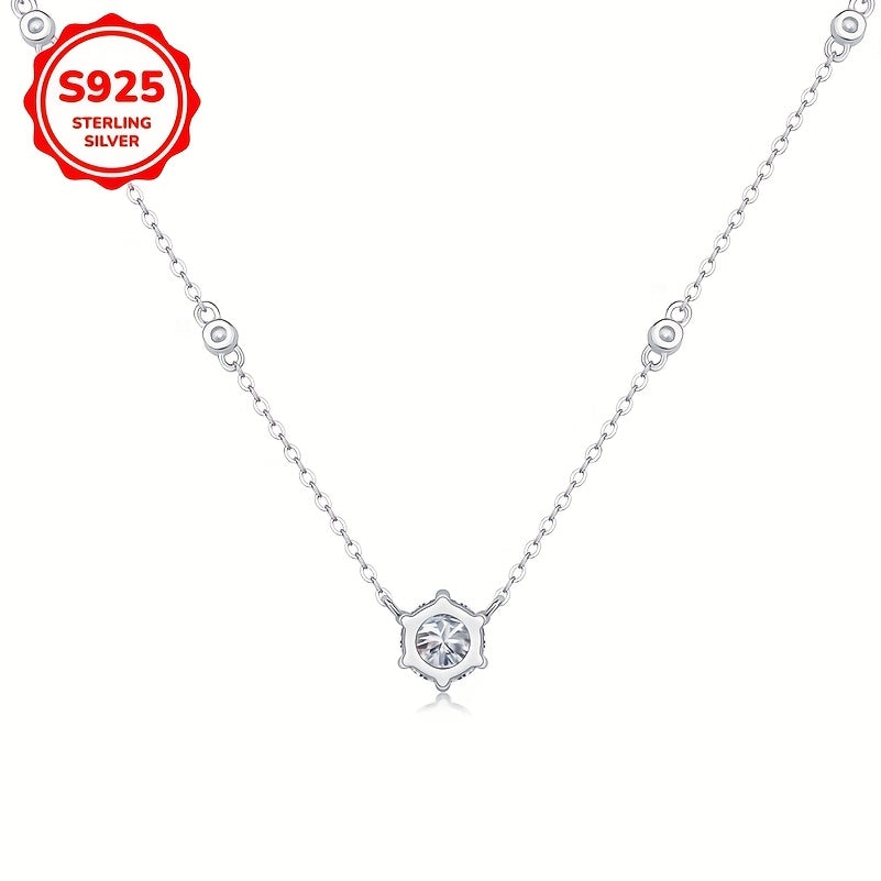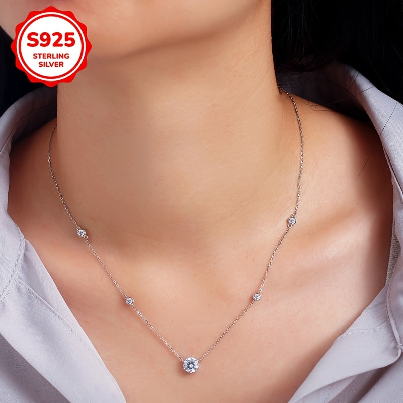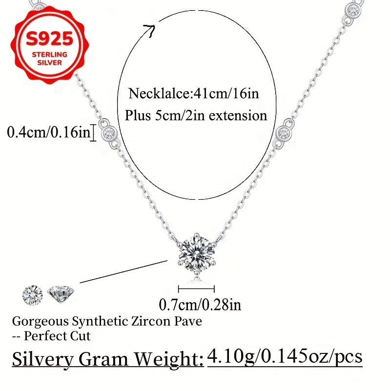This elegant chain necklace is made of hypoallergenic 925 sterling silver with crushed ice round synthetic Zirconia inlay. The size is adjustable for a perfect fit.