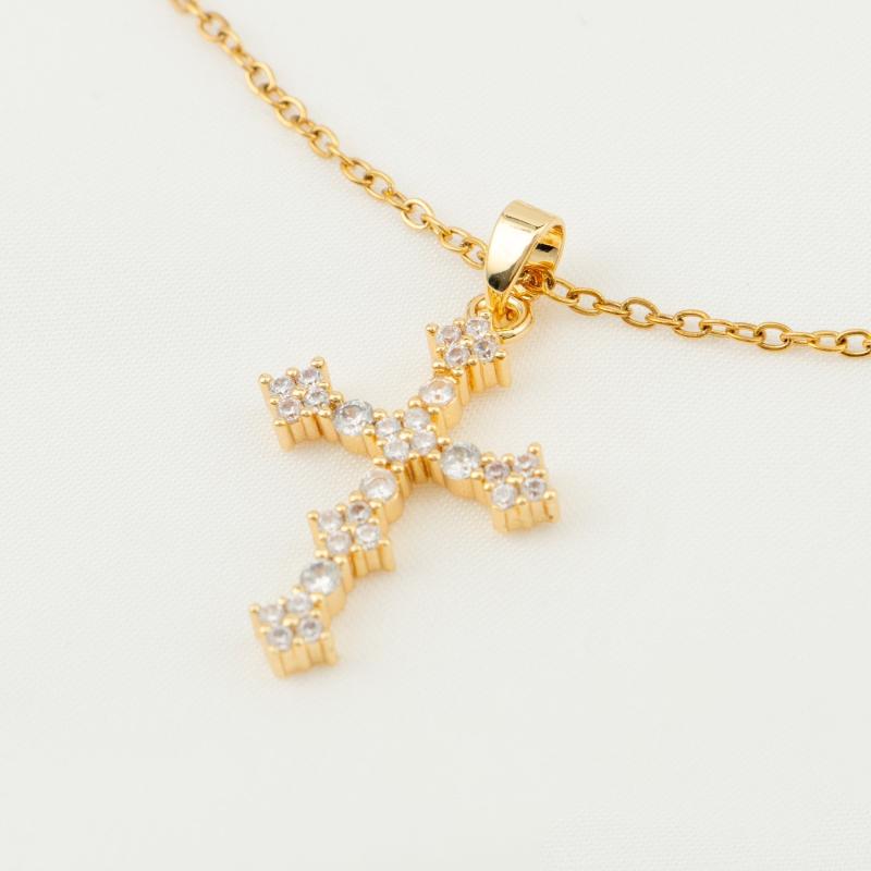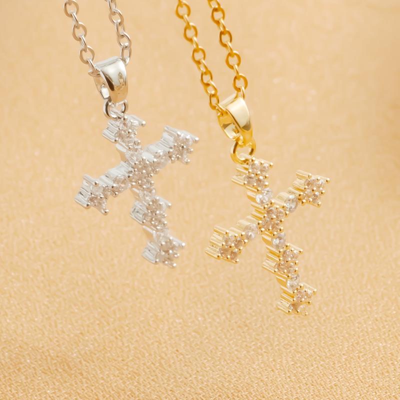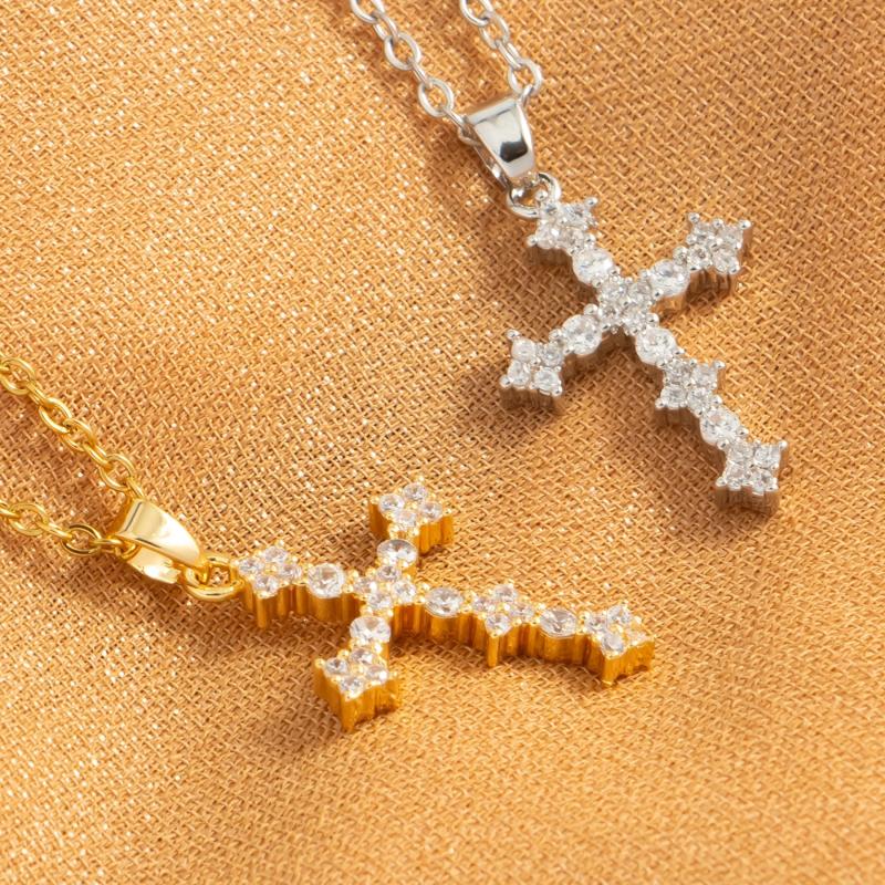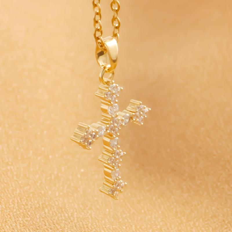 Elegant and timeless, this pendant necklace features a copper cross with rhinestone inlay on a hypoallergenic stainless steel chain. Perfect for daily wear and music lovers.