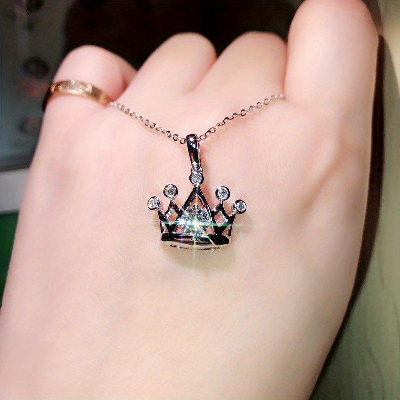 Elegant necklace featuring a crown pendant with sparkling zirconia, perfect for weddings, engagements, parties, and daily wear.