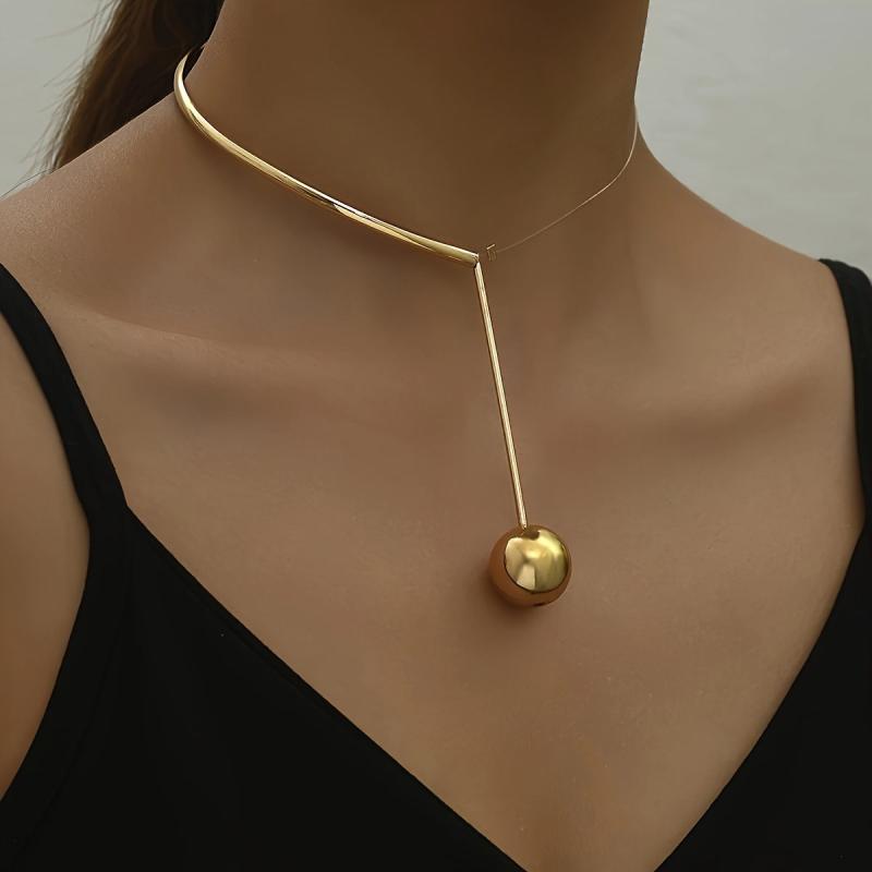 This elegant necklace features an asymmetrical design with a circle pendant and transparent fish line. It is ideal for daily wear and can also be worn to parties year-round. The minimalist golden tone adds a touch of sophistication to any outfit.