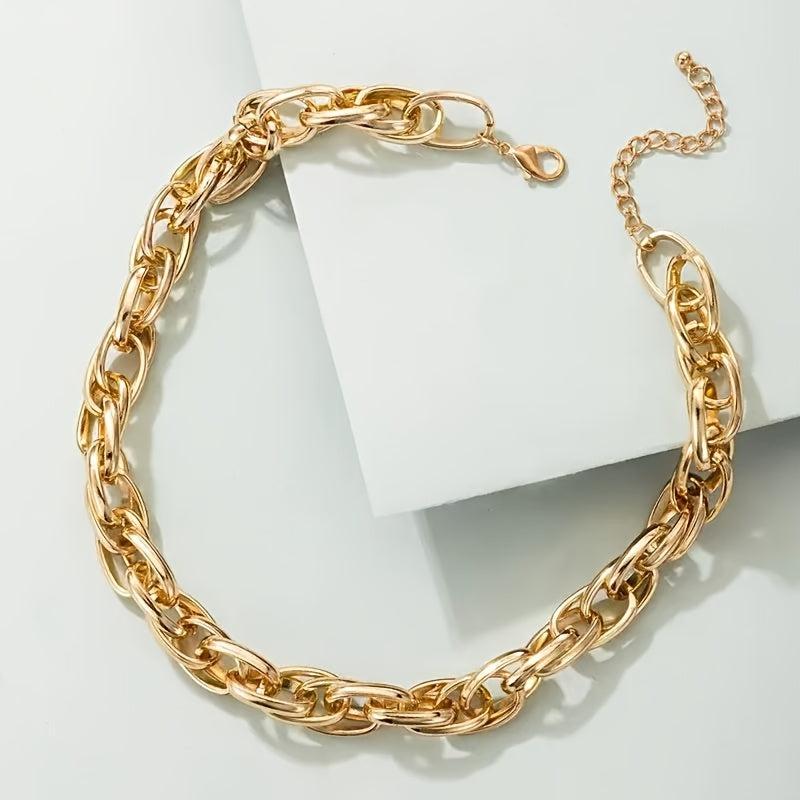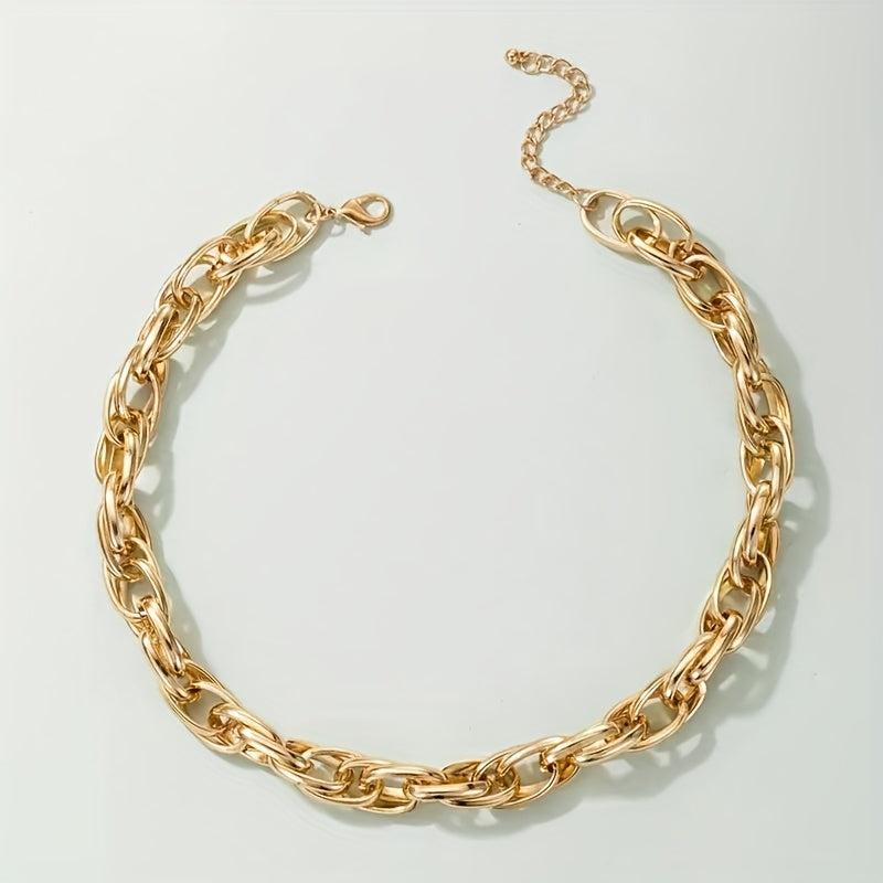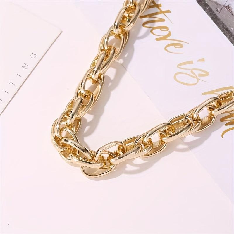 Add a bold touch to your outfit with this golden thick chain necklace. Perfect for parties, holidays, and year-round wear. Made from copper alloy with a matte golden finish.