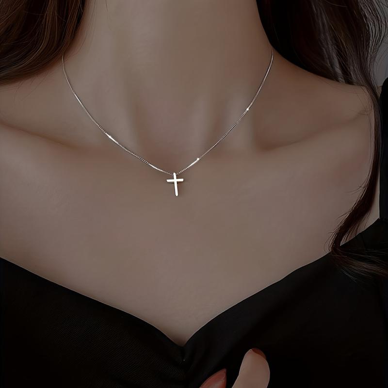 Elegant cross pendant necklace designed for women with a delicate and minimalistic style. Perfect for everyday wear.