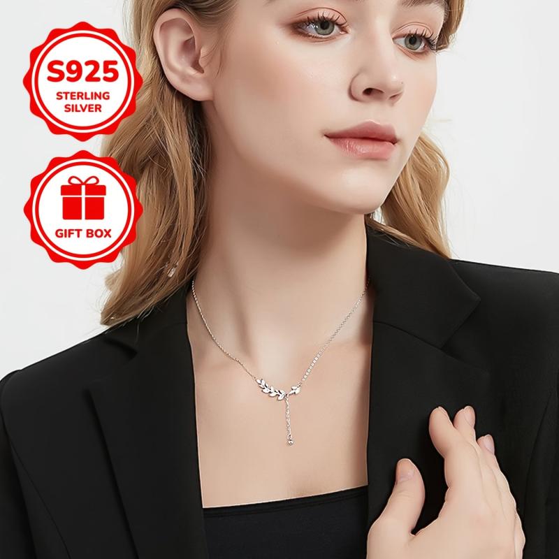 Elegant and luxurious S925 silver necklace featuring synthetic and cubic zirconia. Perfect for a high-end look.