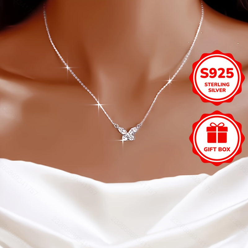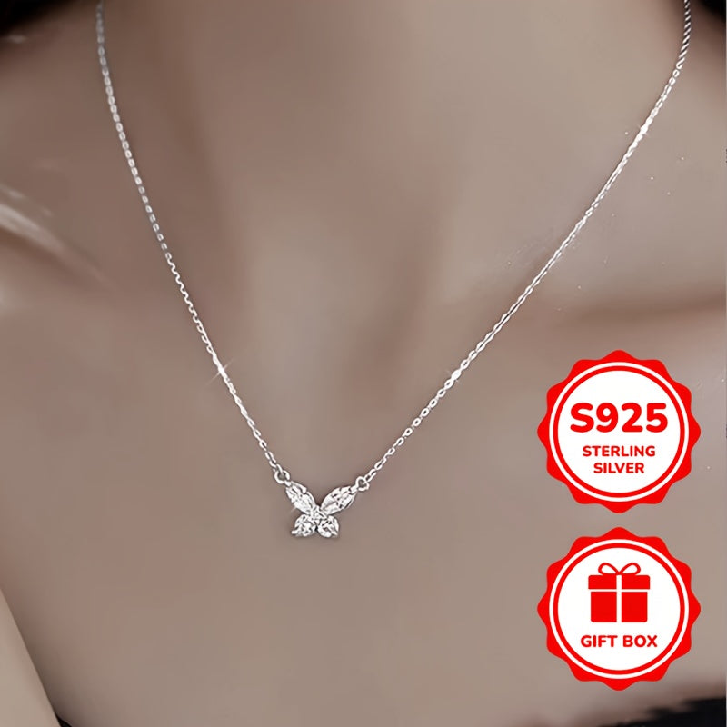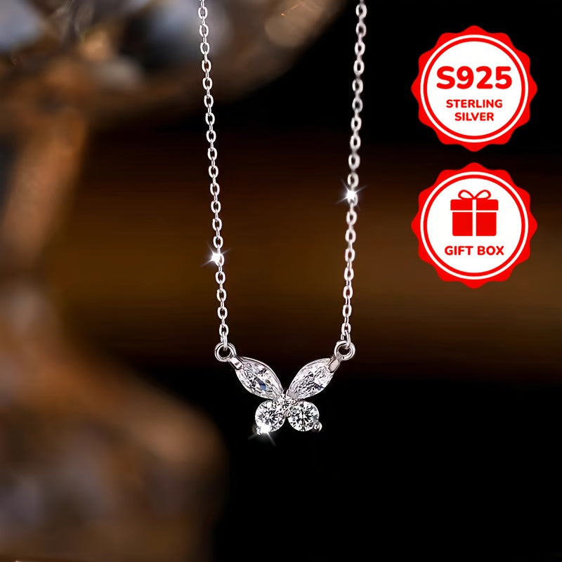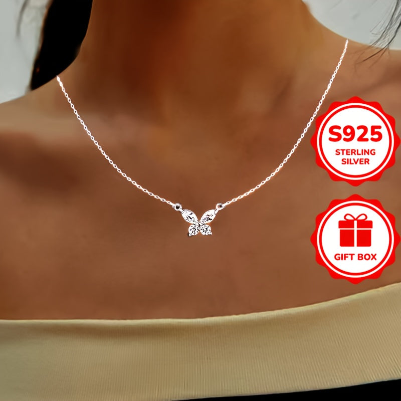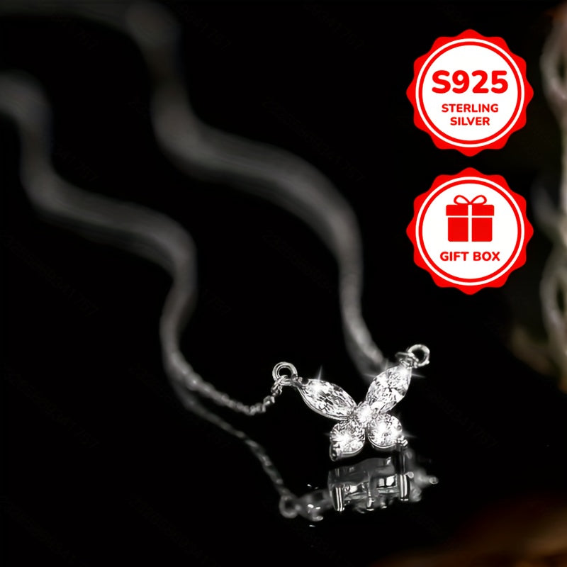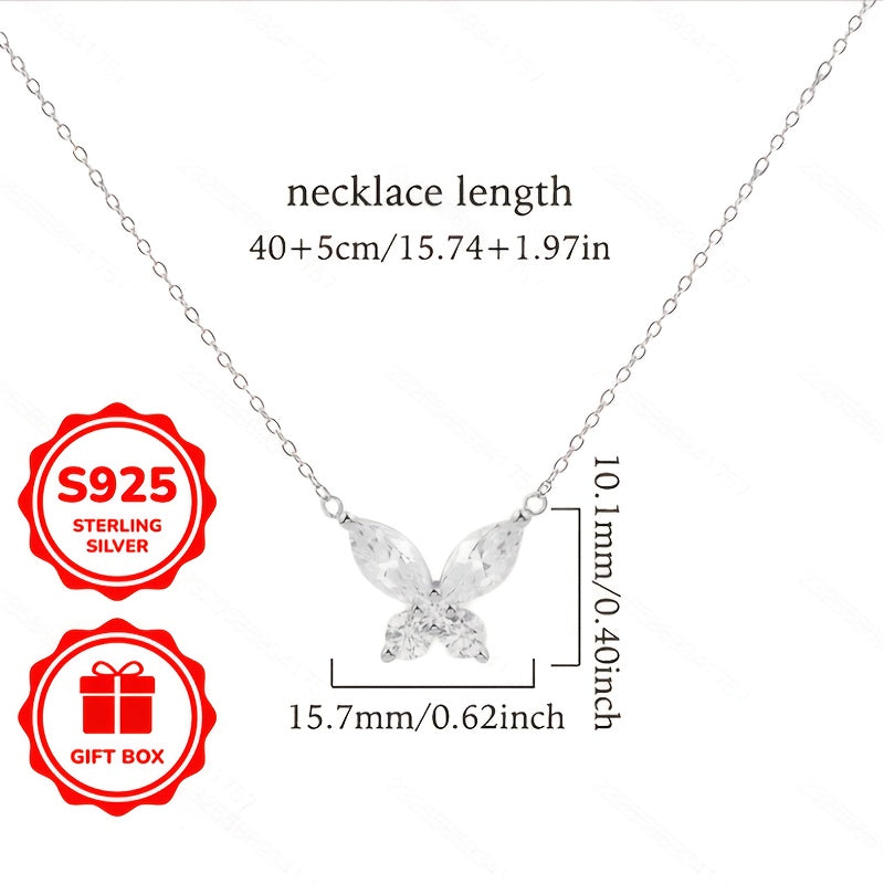Elegant and high-end collarbone chain necklace featuring synthetic zirconia butterfly design. A perfect minimalist accessory for any occasion.
