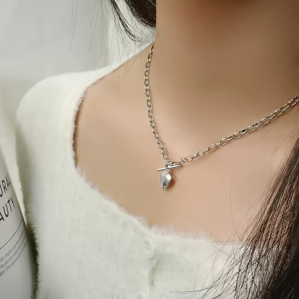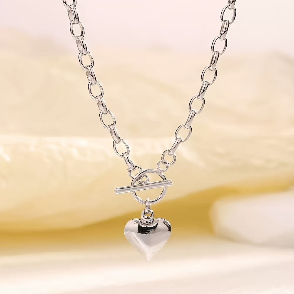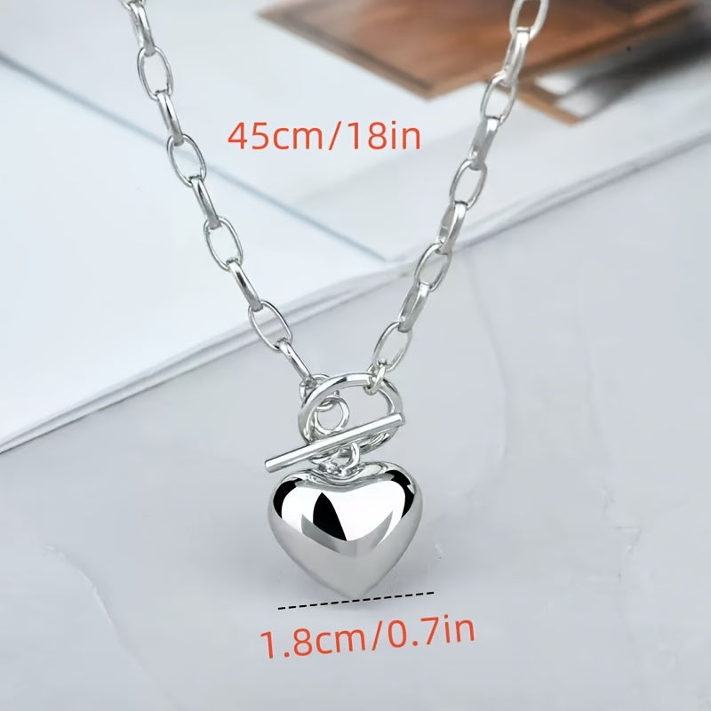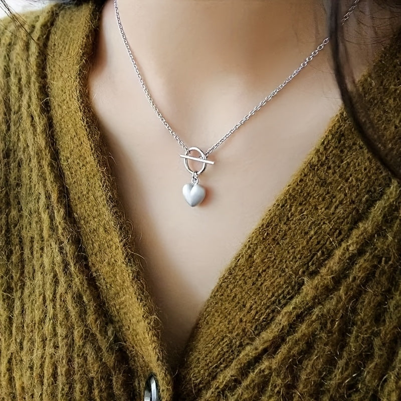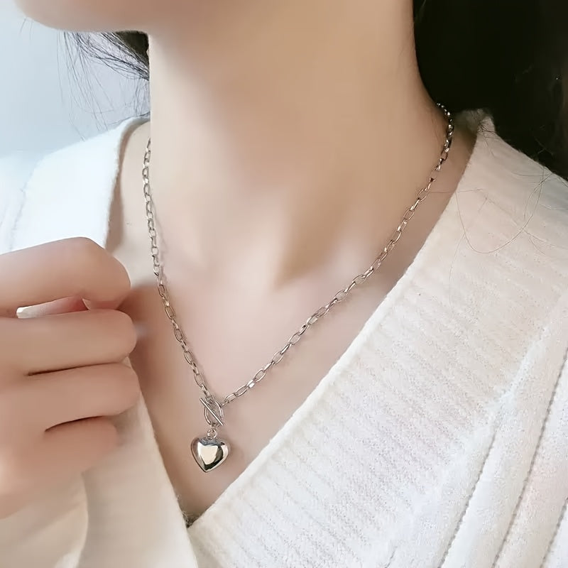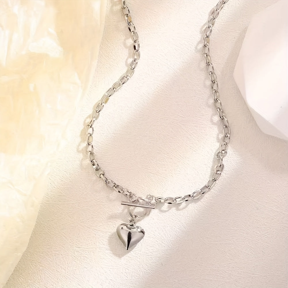 This stylish necklace features a silvery stainless steel heart pendant, perfect for casual parties or as a Mother's Day gift.