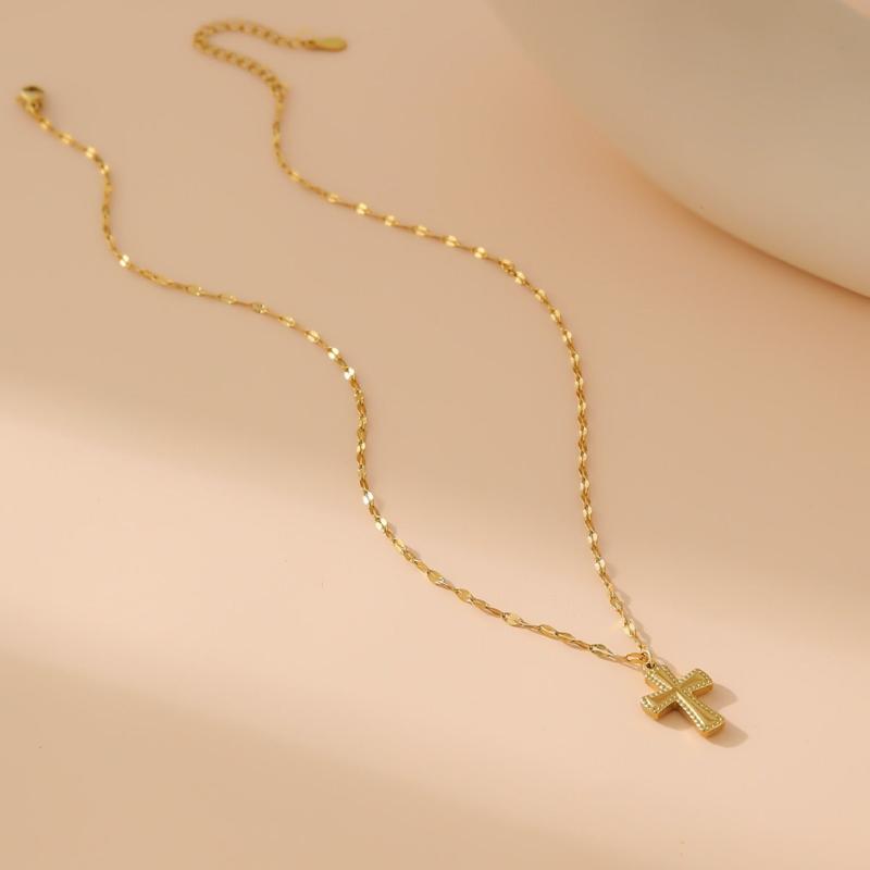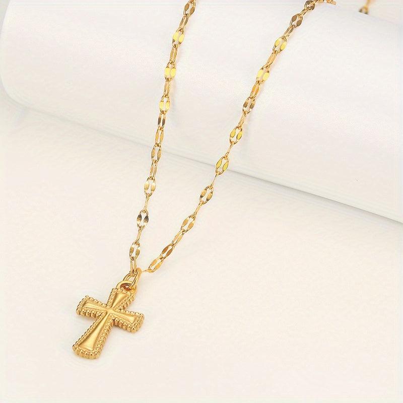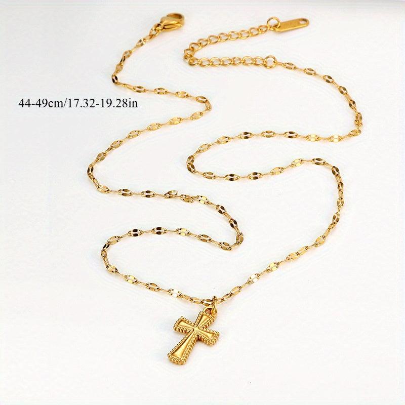Women's Stainless Steel Golden Cross Pendant Necklace Hip Hop Style