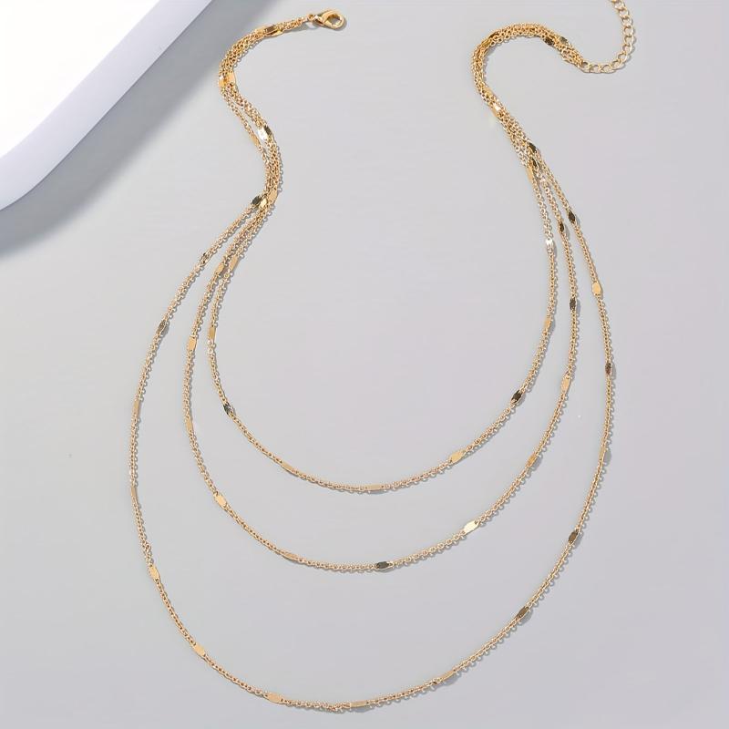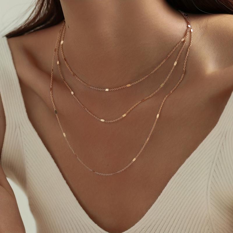 Women's Triple Layered Chain Necklace Minimalist Style Copper Material