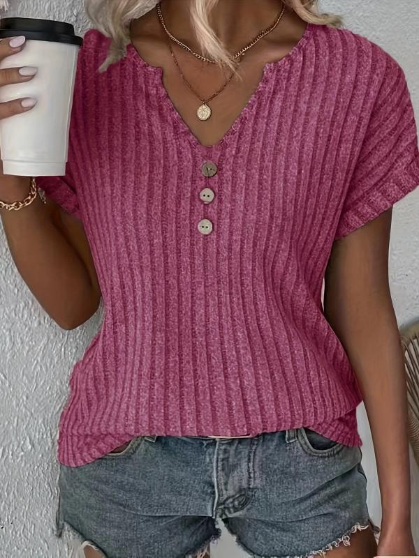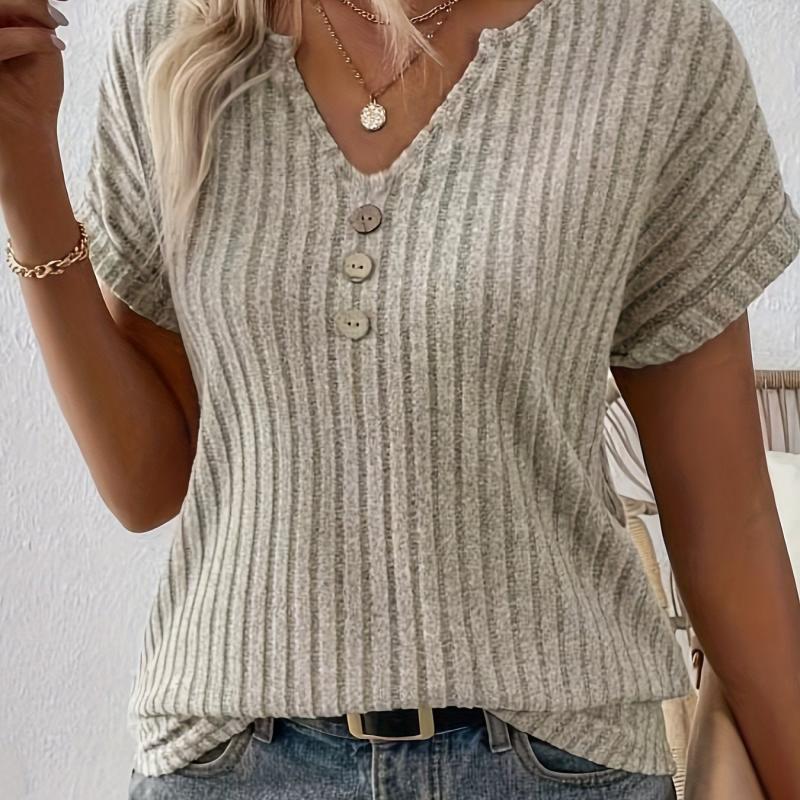 Stay stylish and comfortable with this brown V neck t-shirt featuring button detail. Made from stretchy fabric, perfect for summer wear.