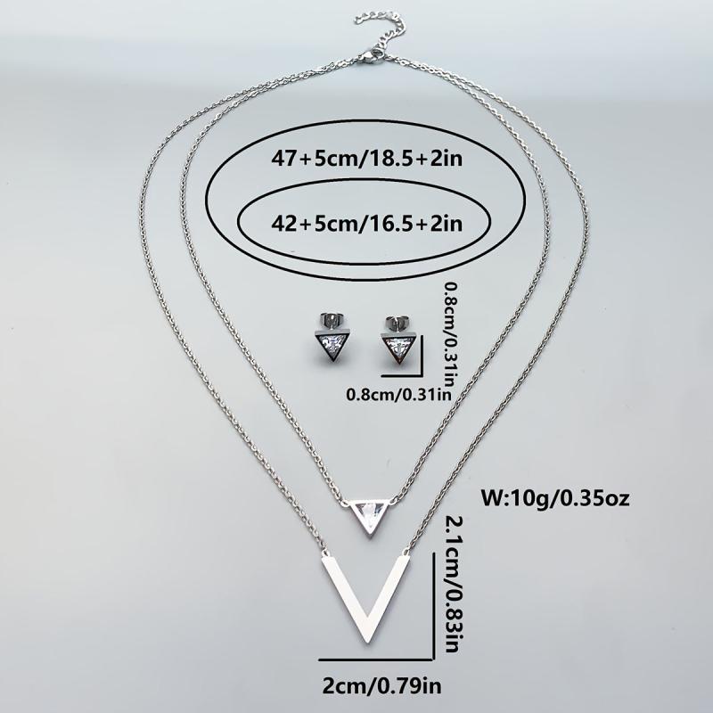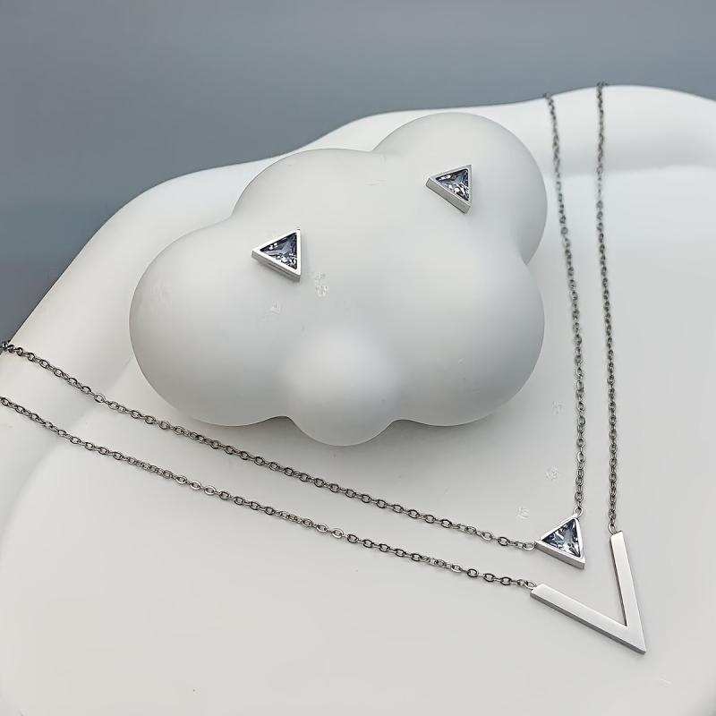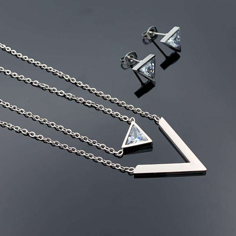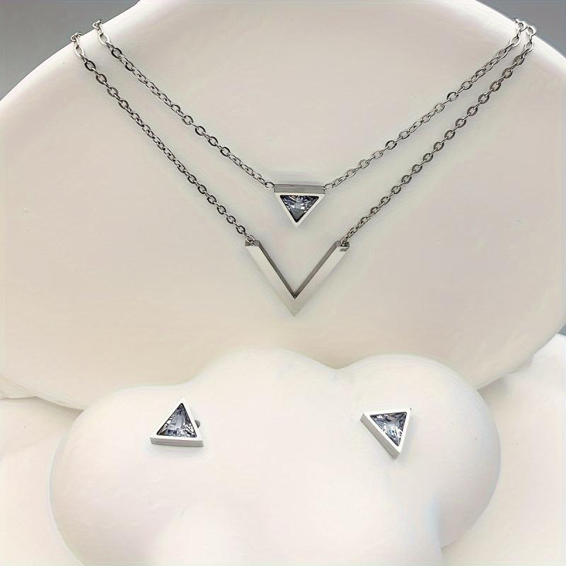 Complete your look with this stylish set featuring a triangle zirconia pendant and earrings. Perfect for birthdays, Christmas, or a holiday date.