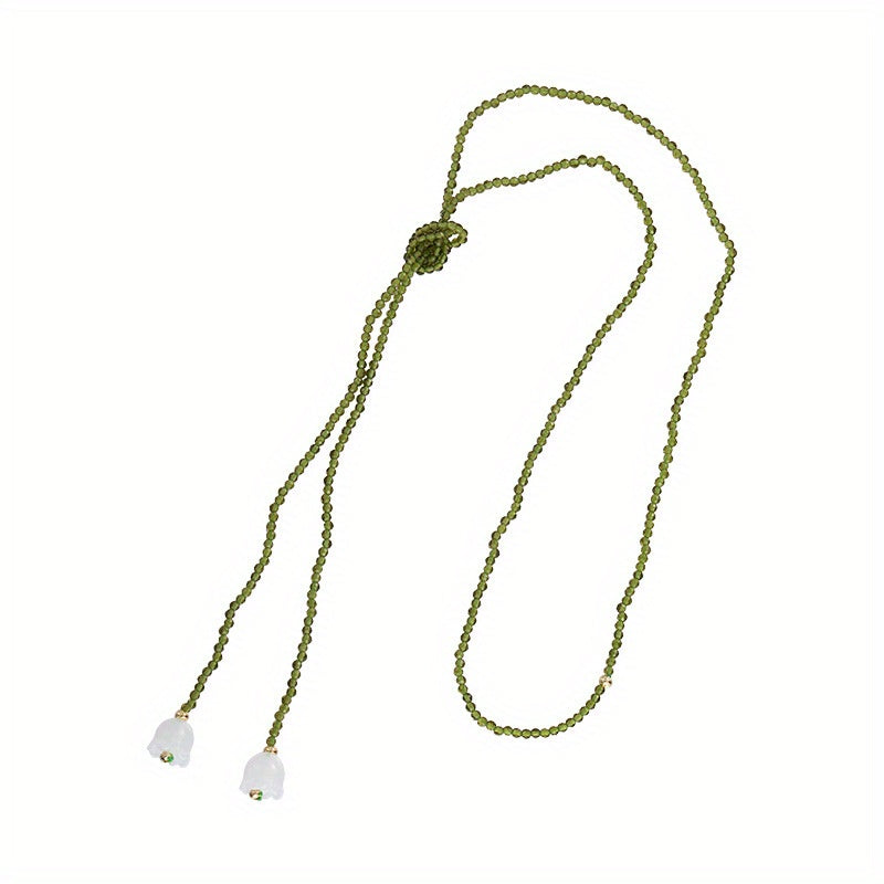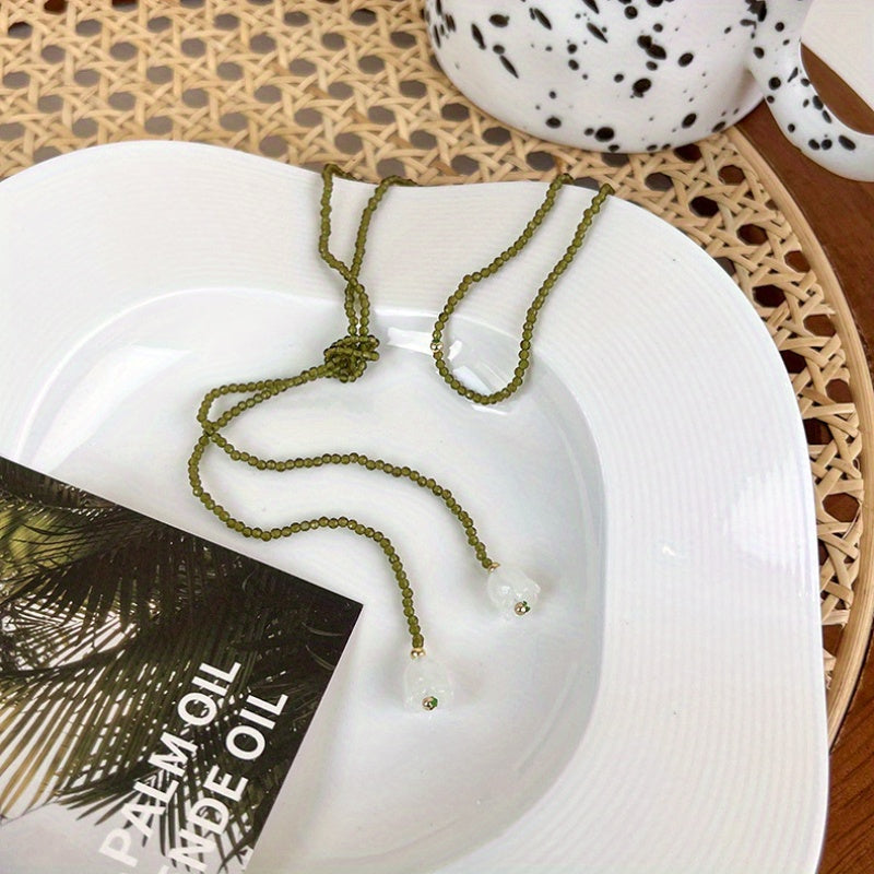 Elevate your style with this double layer Y necklace featuring olive green crystal pendant. Perfect for daily wear and vacation style.