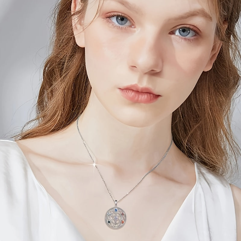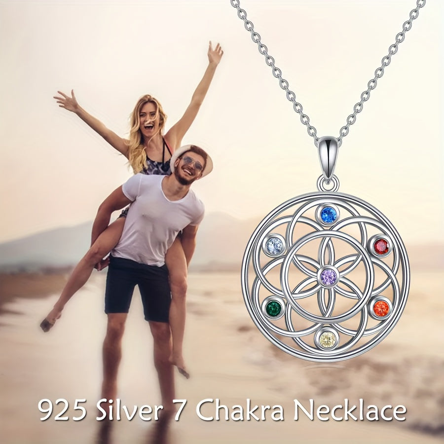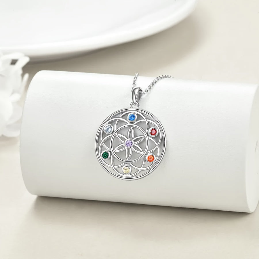 This 7 Chakra Necklace features a 925 Sterling Silver Tree Flower Of Life Pendant, perfect for healing and balancing energies.