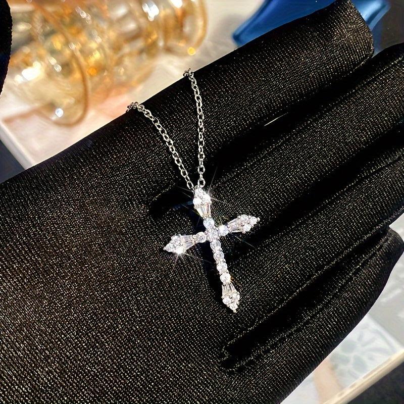 Zirconia Cross Pendant Necklace Religious Symbol Jewelry