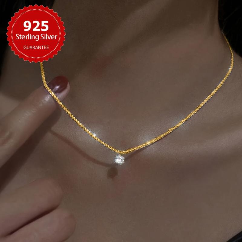 This lightweight and elegant pendant necklace is made of high-quality s925 pure silver, featuring a beautiful zirconia stone. Perfect for adding a touch of sophistication to any outfit.