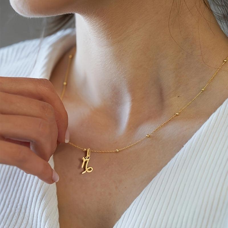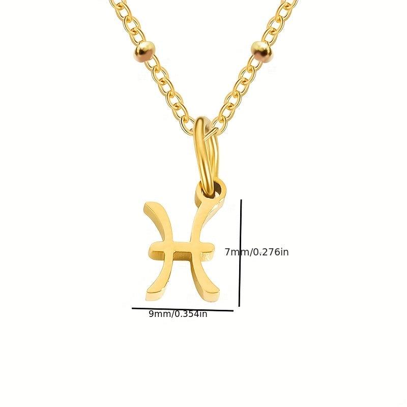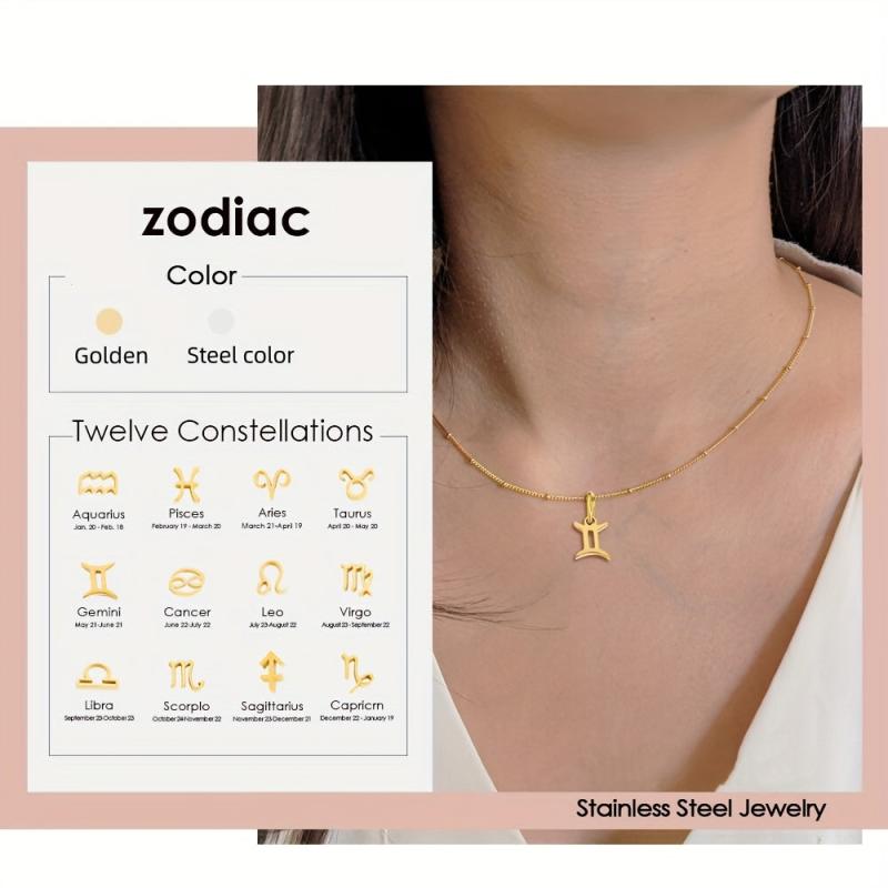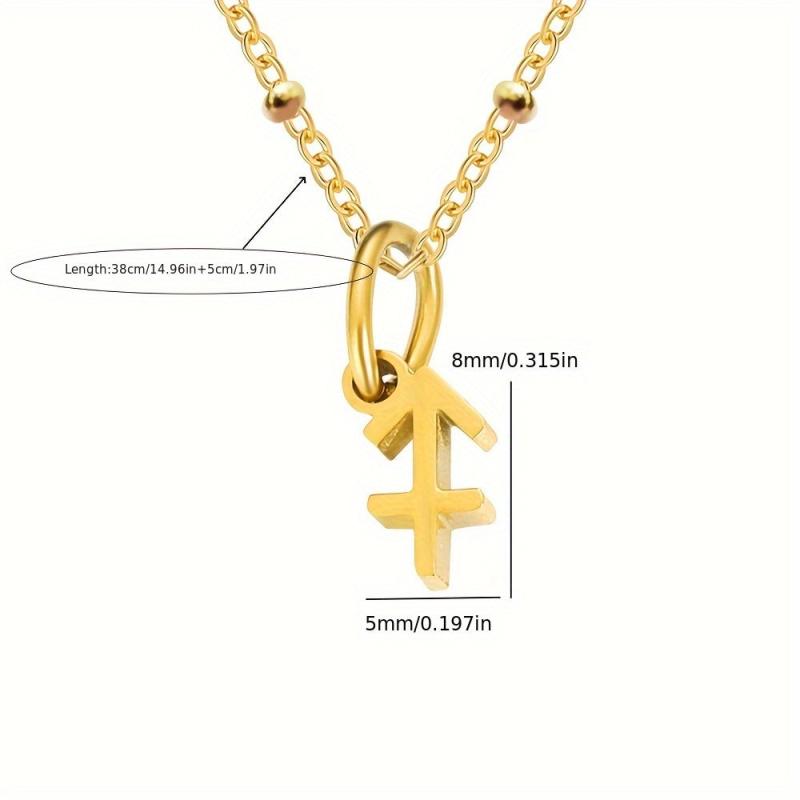 This minimalist pendant necklace features a zodiac sign design crafted from stainless steel, making it perfect for casual attire or gifting. The necklace also includes a cross charm for added detail.